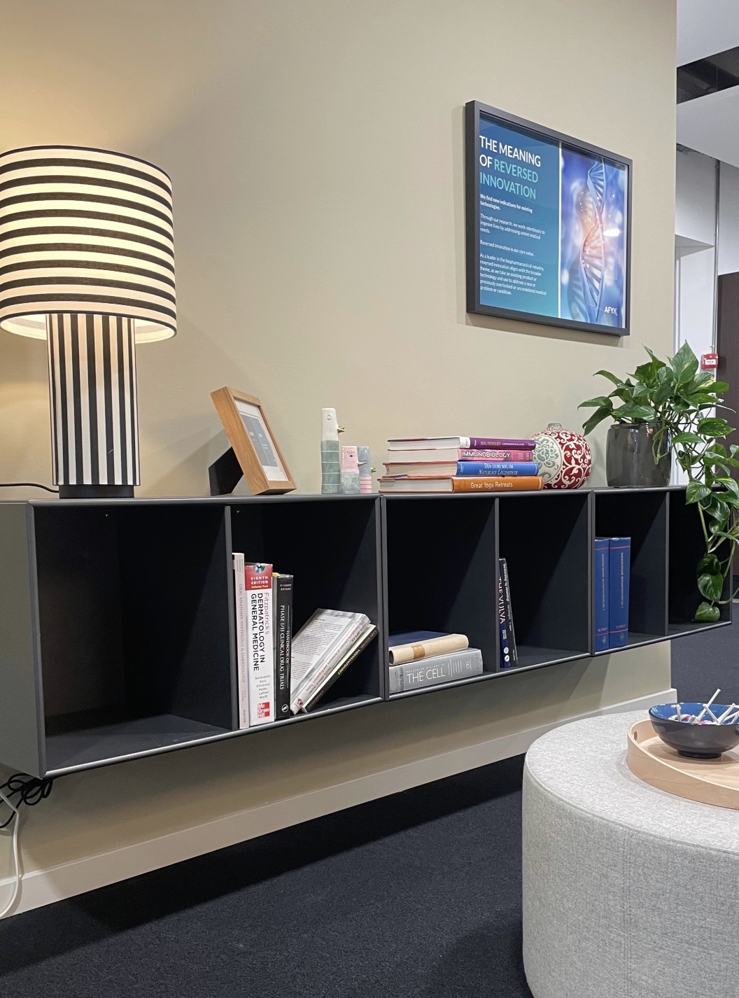 Men hvordan skaber man en arbejdsplads, der både er økonomisk fornuftig, miljøvenlig og visuelt stærk? Hvordan integrerer man virksomhedens identitet i indretningen uden at det bliver for meget? Og hvordan gør man det bæredygtigt? Det var udfordringen, da AFYX Therapeutics kontaktede os. De ville have en indretning, der viste deres værdier i praksis - ikke bare på papiret.