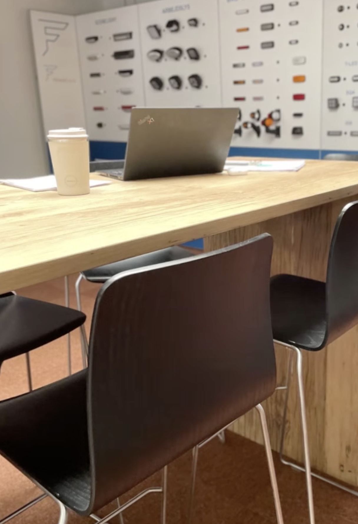 I showroomet kunne FDParts se og vælge mellem hundredvis af brugte møbler. Alt var overskueligt, og vores team var superhjælpsomme og effektive. Her kunne de få et klart indtryk af mulighederne og vælge præcis de møbler, der passede til deres nye kontor.