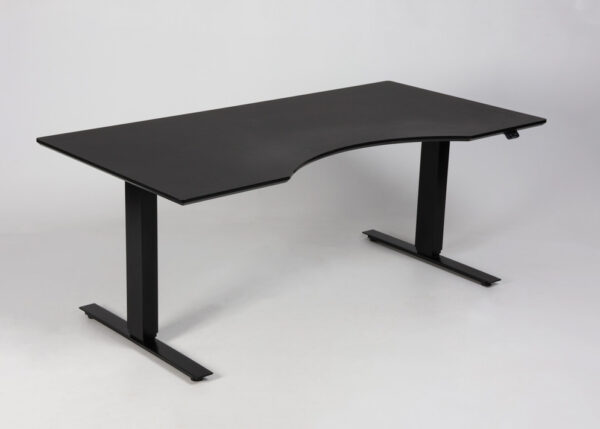 Et elektrisk hæve-sænkebord i brug, som gør det nemt at skifte mellem siddende og stående arbejde.