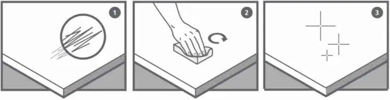 - Efter det er størknet, prøv at fjerne det ved at gnubbe med et tørt håndklæde eller med skrabe med en træ- eller nylonskraber, uden at lave mærker eller ridser i overfladen.