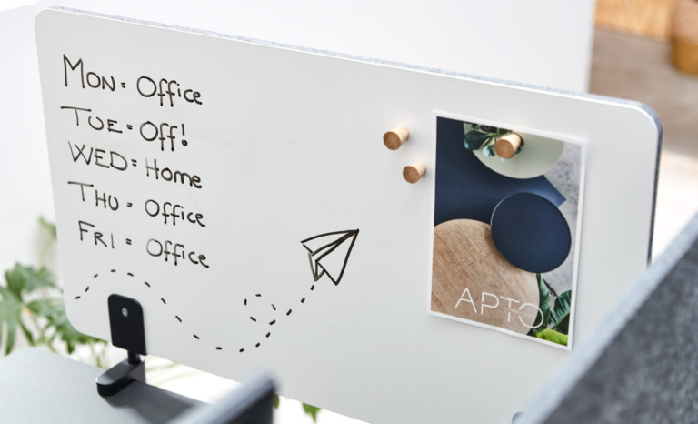 Du kan også vælge at opsætte bordskærme, som ikke alene er med til at skabe et bedre privatliv på det åbne kontor, men også virker afskærmende for bevægelse og støj i nærheden. Tilsammen skaber det bedre vilkår for medarbejderes koncentration, da der kan komme færre forstyrrende og påvirkende elementer tæt på.