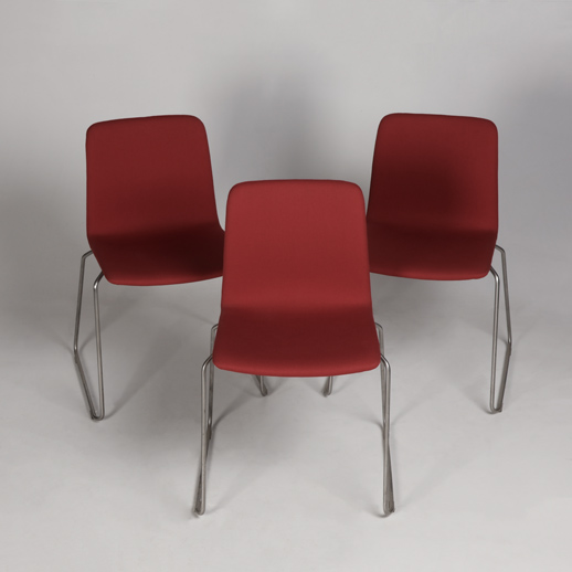 "Sæt på 3 stk. Paustian Spinal 44 konferencestole, fuldpolstrede i rød steelcut med medestel i børstet stål.