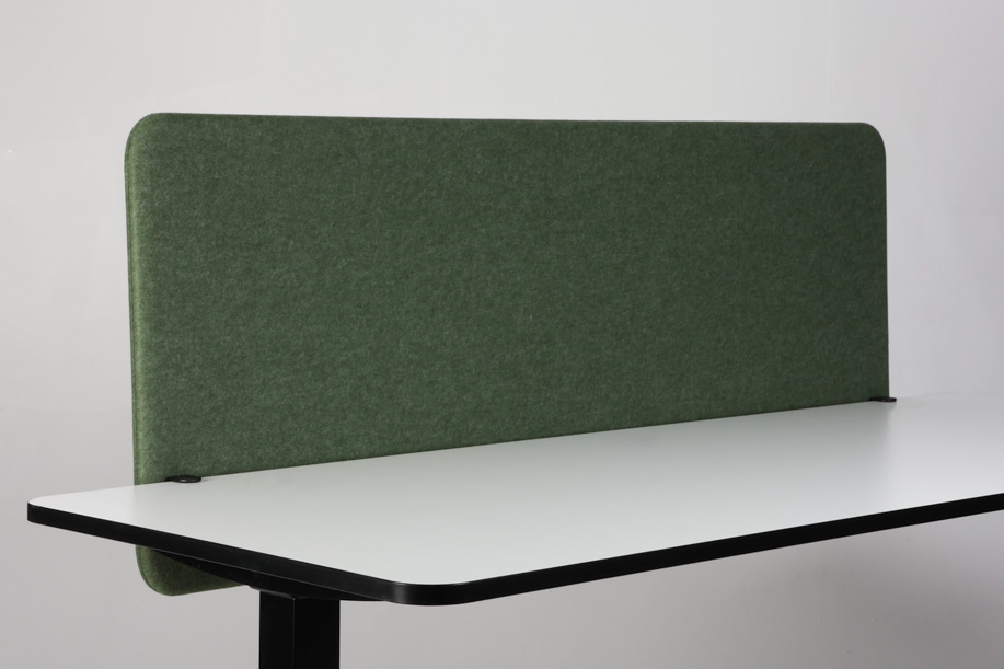 "Abstracta bordskærm i meleret grøn uldfilt med bordbeslag. Bordskærmen er fremstillet i et effektivt lyd- og støjreducerende materiale og er en god måde, at skabe arbejdsro og diskretion på kontoret – særligt i større og åbne kontormiljøer. Desuden anvendelig som opslagstavle.