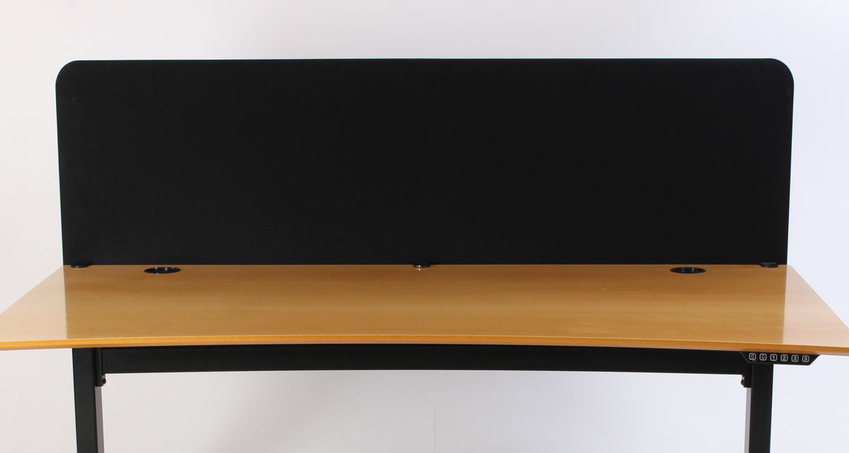 Bordskærmen er fremstillet i et effektivt lyd- og støjreducerende materiale og er en god måde, at skabe arbejdsro og diskretion på kontoret – særligt i større og åbne kontormiljøer.
