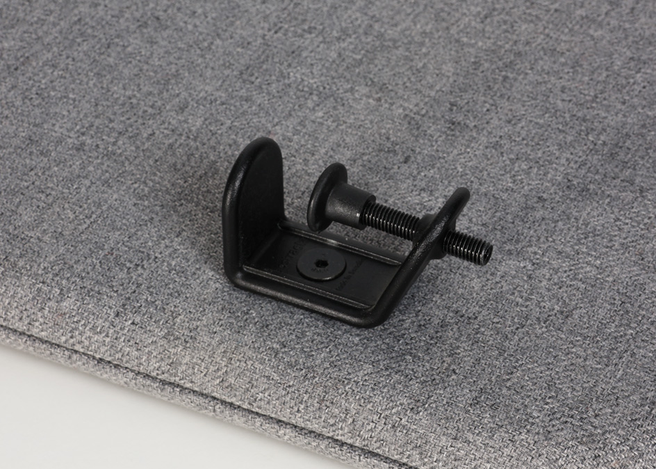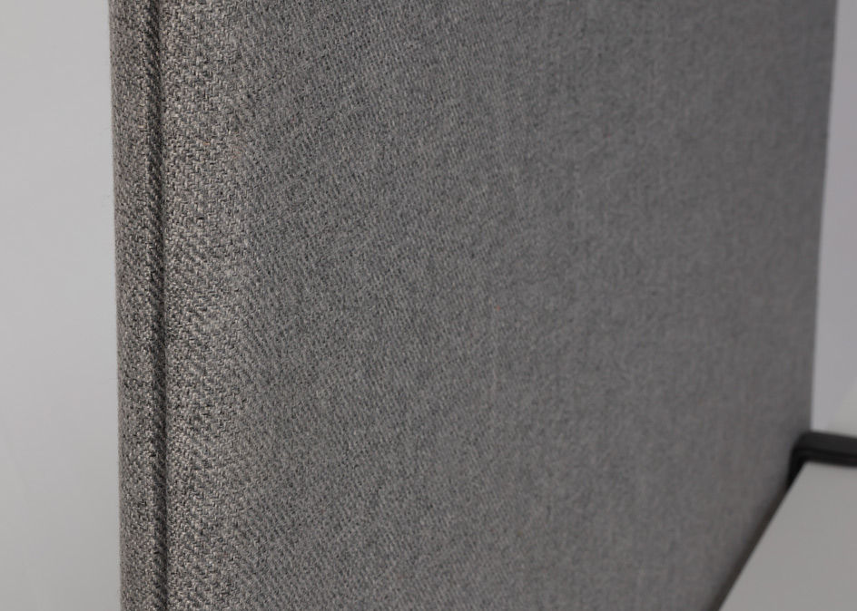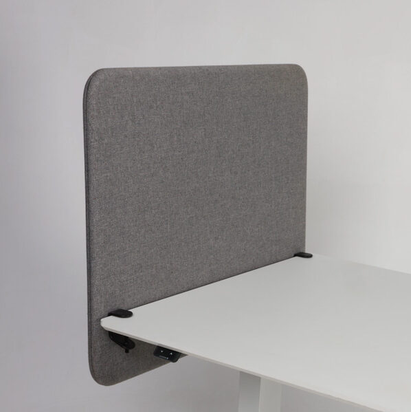 "Abstracta sideskærm/bordskærm i gråmeleret med sorte monteringsklemmer. Foruden den primære funktion, at afskærme for uro og høje lyde, er bordskærmen endvidere anvendelig som opslagstavle.