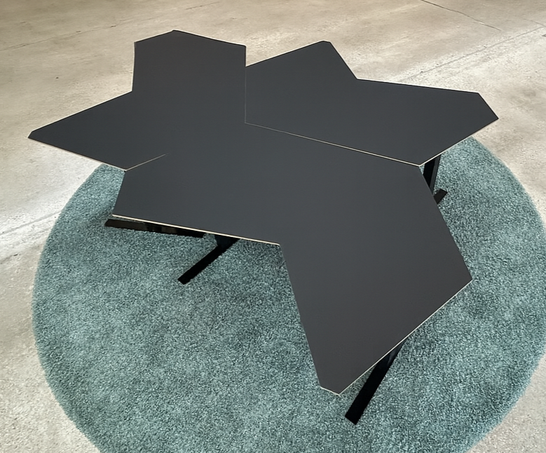 Bordpladen er udført i FSC-certificeret MDF med en overflade af linoleum og synlig MDF-kant, og er monteret på et tre-leddet Swedstyle-stel med motor i hvert ben. Den unikke udformning gør det muligt at indrette bordopstillingen på flere forskellige måder, så det passer til ethvert lokale.