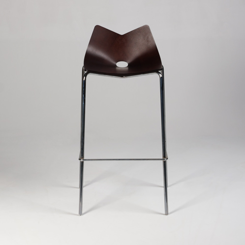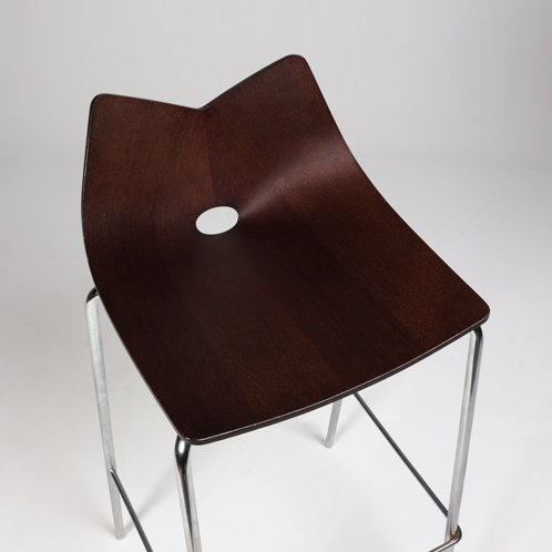 "Allermuir A562 barstol med elegant udformet sæde i formbøjet wengé og blankforkromet stel.