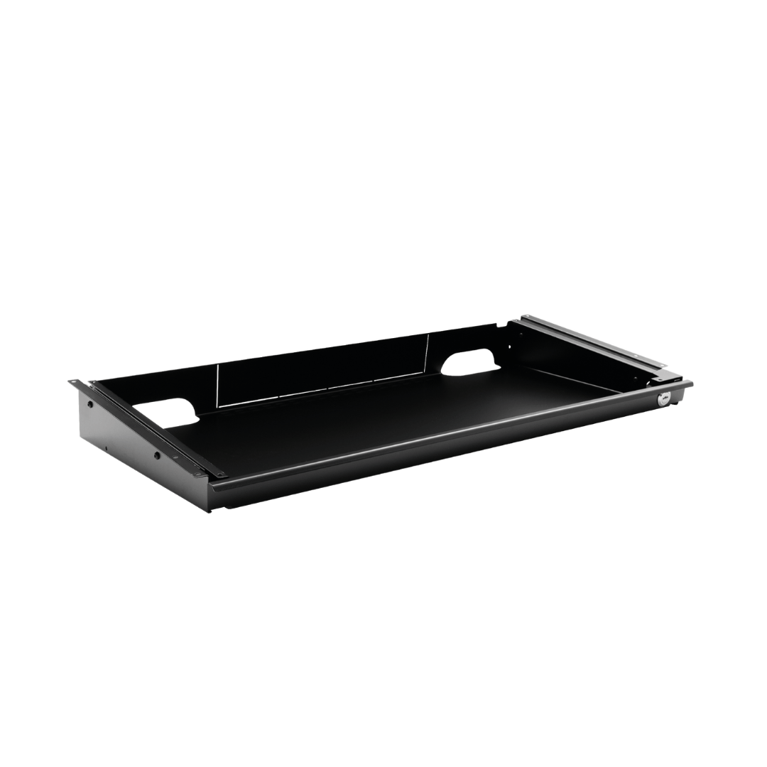 "Athene laptopskuffe i sort (RAL 9005) – en praktisk løsning til arbejdsstationer med bærbar computer og dockingstation, eller hvis du blot ønsker at opbevare den bærbare i en skuffe, mens du arbejder på en ekstern skærm. Skuffen har to udluftningshuller og man kan tilmed fjerne yderligere af bagkanten for ekstra ventilation, hvor kabler desuden nemt føres igennem. Skuffen kan aflåses.
