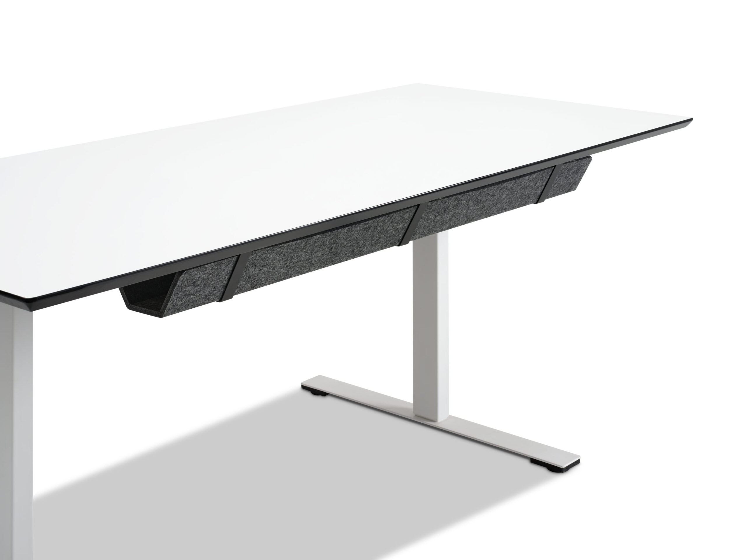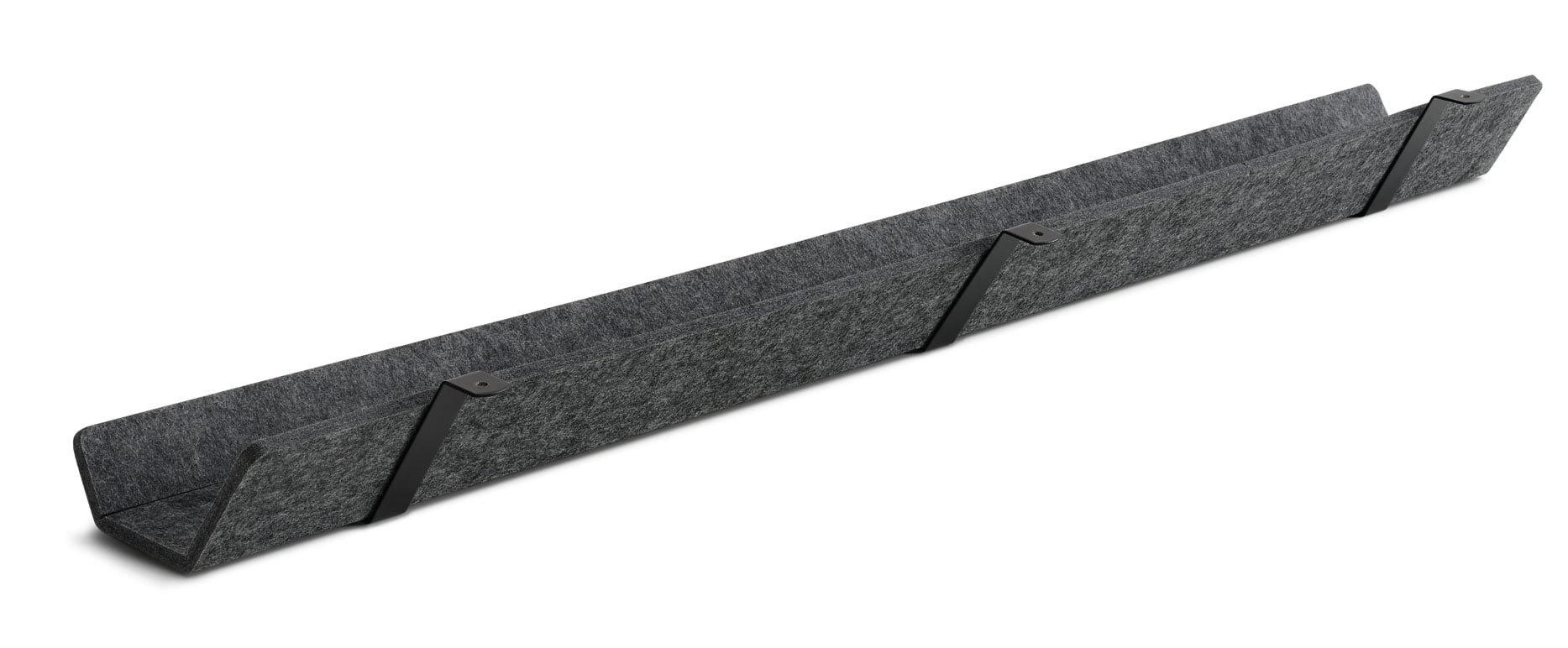 "Fabriksny APTO PLUS kabelbakke i filt på 115 cm. Kabelbakken samler ledningerne og holder gulvet fri, så det giver et pænt og ordentligt udtryk under arbejdsbordet. Designet med omtanke for naturen – filten er fremstillet af 70% upcyclede plastflasker.
