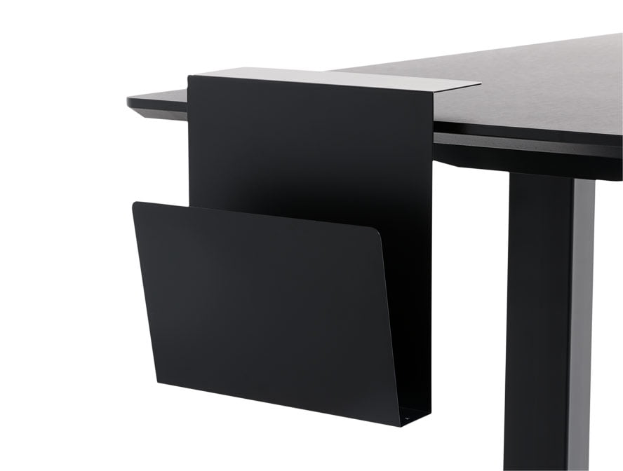 "Fabriksny APTO PLUS magasin- og bogholder med klemme. Den stilfulde holder er perfekt til notesblokken, laptoppen eller magasiner, og fastgøres nemt til bordkanten med den medfølgende klemme uden at efterlade huller, såfremt den ønskes omplaceret.