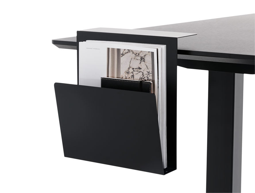 Fabriksny APTO PLUS magasin- og bogholder med klemme. Den stilfulde holder er perfekt til notesblokken, laptoppen eller magasiner, og fastgøres nemt til bordkanten med den medfølgende klemme uden at efterlade huller, såfremt den ønskes omplaceret.