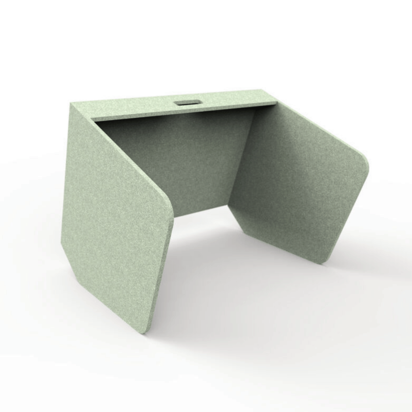 Smart, flytbar afskærmning fra APTO PLUS i lys grøn filt med greb. Skærmen kan vendes to veje – enten med udgang til ledninger og let afskærmning af lyset ovenfra, eller med grebet nedad der åbner op for et større lysindfald ovenfra.