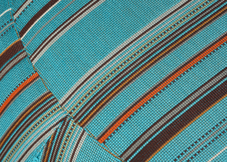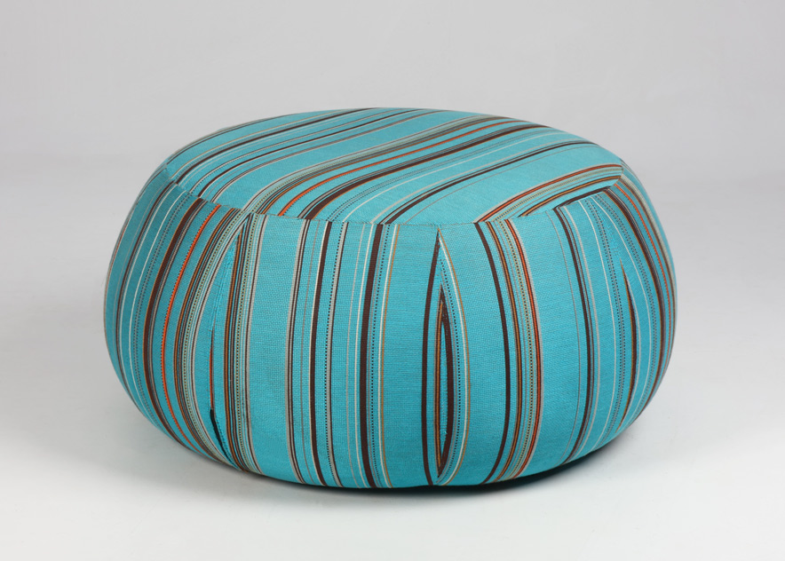 "Stor puf med retro-betræk med Paul Smith stripes, fra italienske Arper.