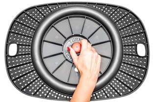 Backapp 360 ergonomisk balanceplade i sort. Ved at dreje på Magic Ball under balancebrættet, øges graden af balancetræning og blodcirkulation, hvorfor man opnår en bedre holdning, samtidig med at træne musklerne i hofte og lår. Nem, bekvem og sund måde at indføre bevægelse og træning mens kontorarbejdet passes.