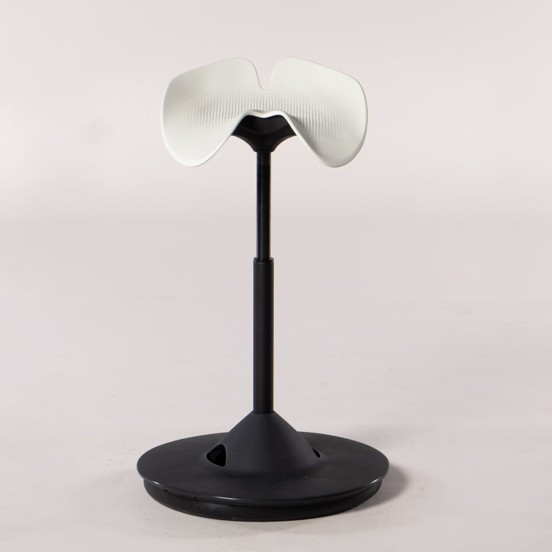 "Backapp Hipp ergonomisk stol i cremevid til kontor, hjemmearbejdspladsen, mødelokale osv. Backapp Hipp-stolen er en unik sadelstol med ergonomien i fokus. Når du sidder på Backapp Hipp vil du naturligt bevæge dig, så rygmuskulaturen styrkes til gavn for eventuelle rygsmerter. Det ergonomiske sæde er blødt og fleksibelt, og fodpladen er fremstillet i et støddæmpende materiale. Backapp Hipp er produceret af genbrugsmaterialer, som nemt kan demonteres til genbrug.