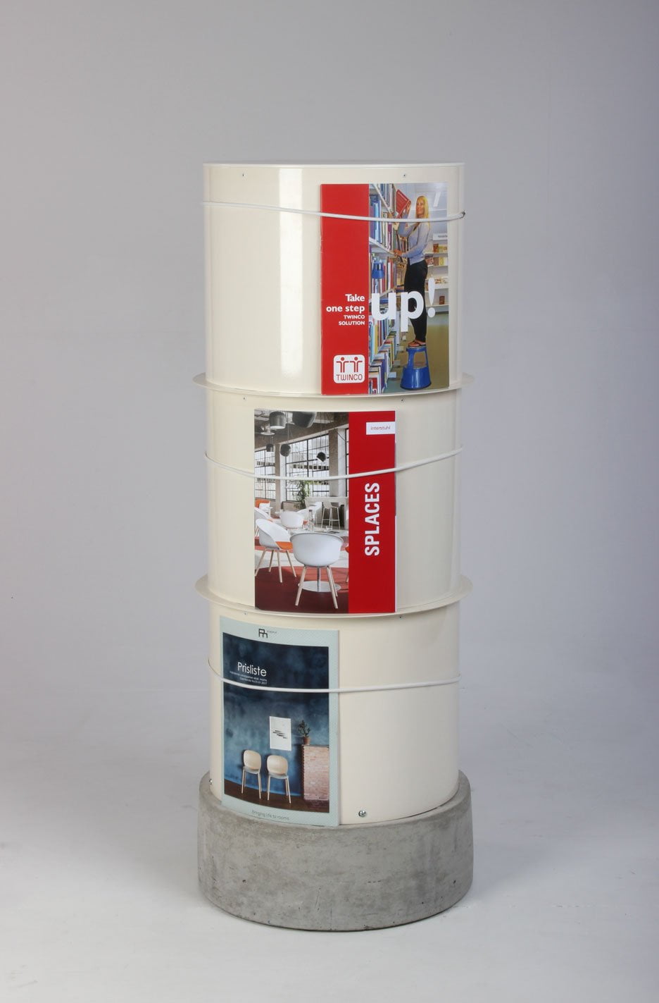 "Unik, søjleformet brochureholder og cafébord i ét!