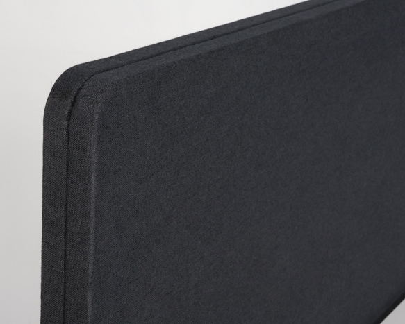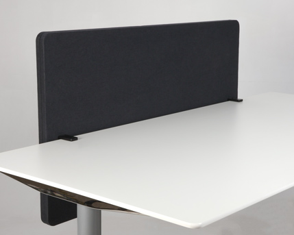 "Bordskærm i mørkegrå til montering på bordkanten med klemmer. Foruden den primære funktion, at afskærme for uro og høje lyde, er bordskærmen endvidere anvendelig som opslagstavle.