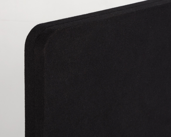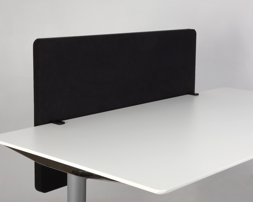 "Bordskærm i sort til montering på bordkanten med klemmer. Foruden den primære funktion, at afskærme for uro og høje lyde, er bordskærmen endvidere anvendelig som opslagstavle.