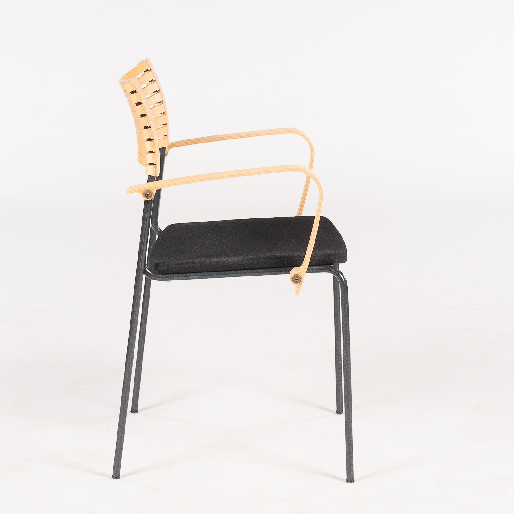 Den prisvindende stol har sædepolstring i sort alcantara, samt armlæn og rygstykke i lakeret ahorn.