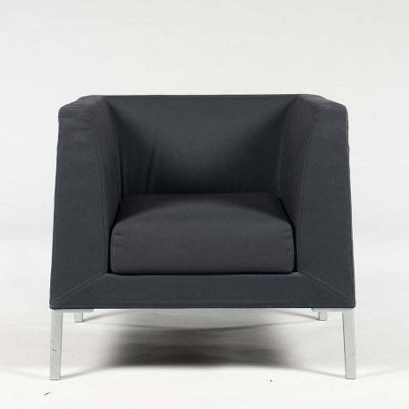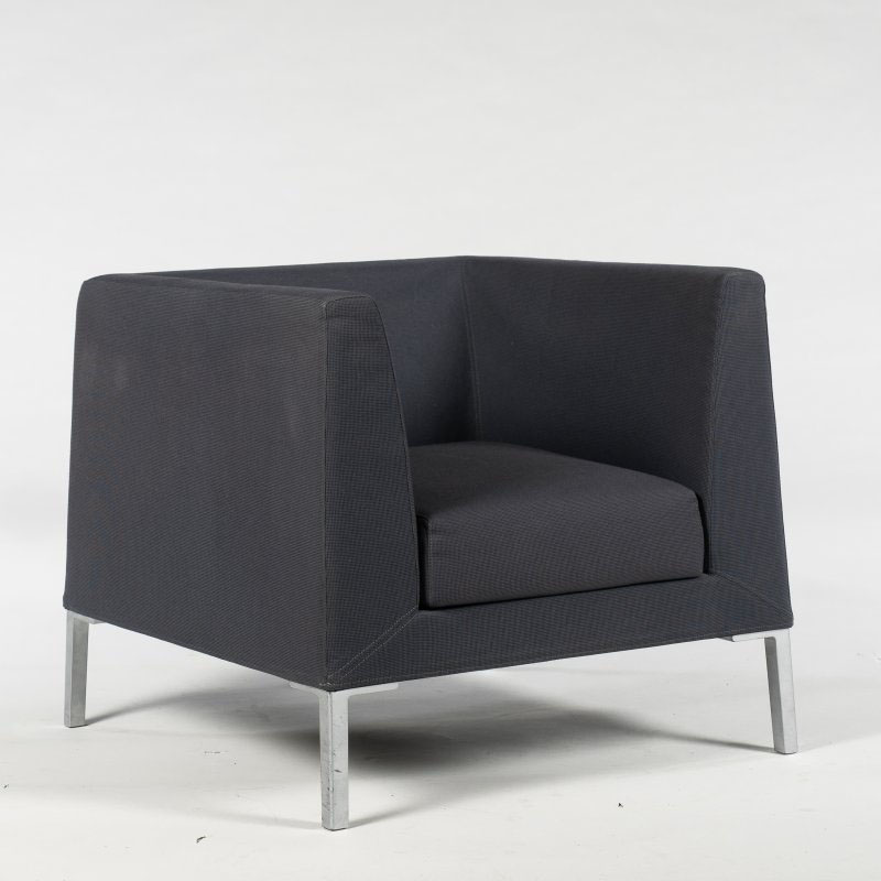 "Paustian loungestol i mørkelilla med mat grå aluminiumsben.