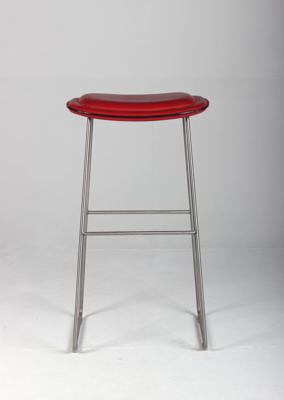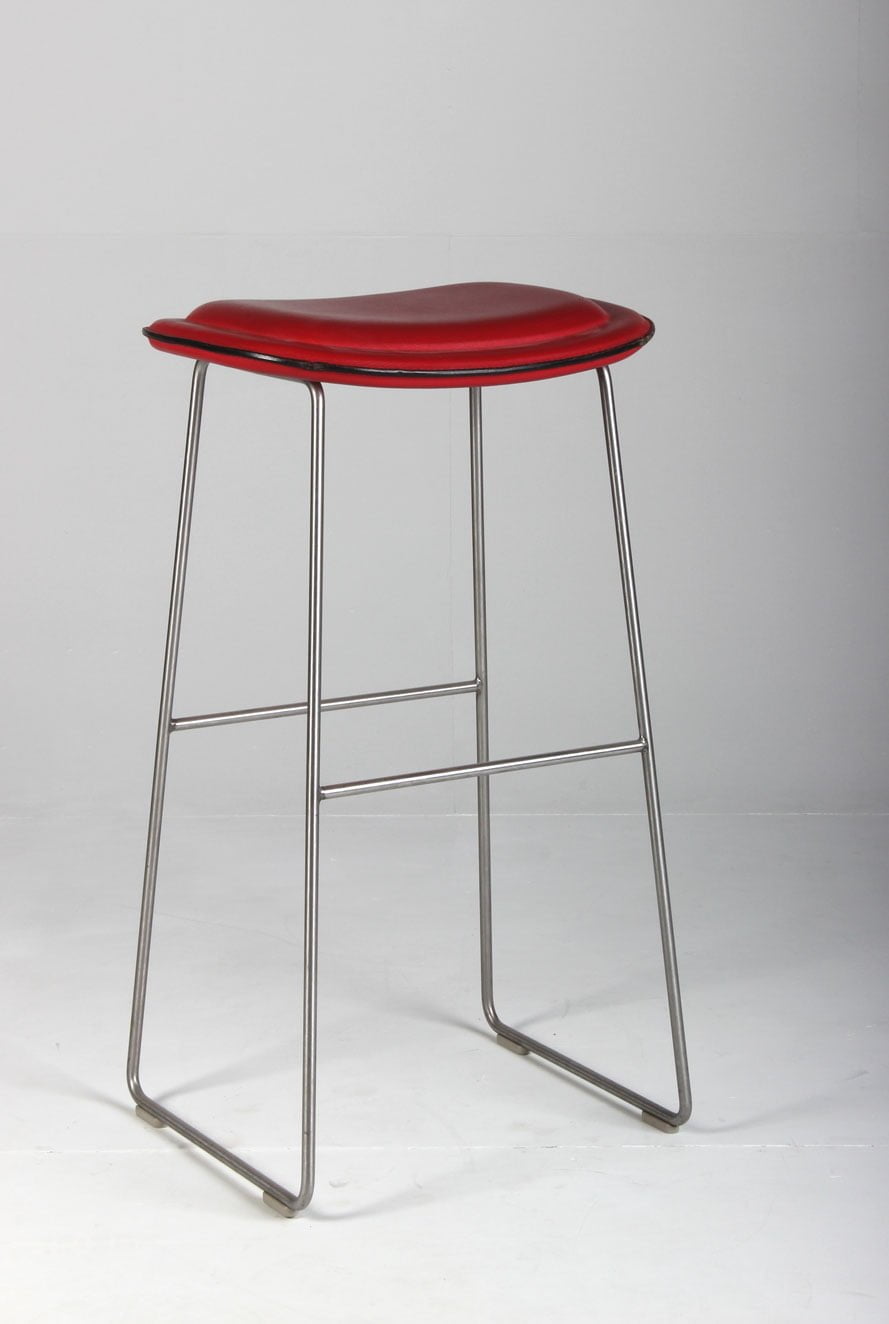 Cappellini Hi Pad barstol med polstring i rødt læder.