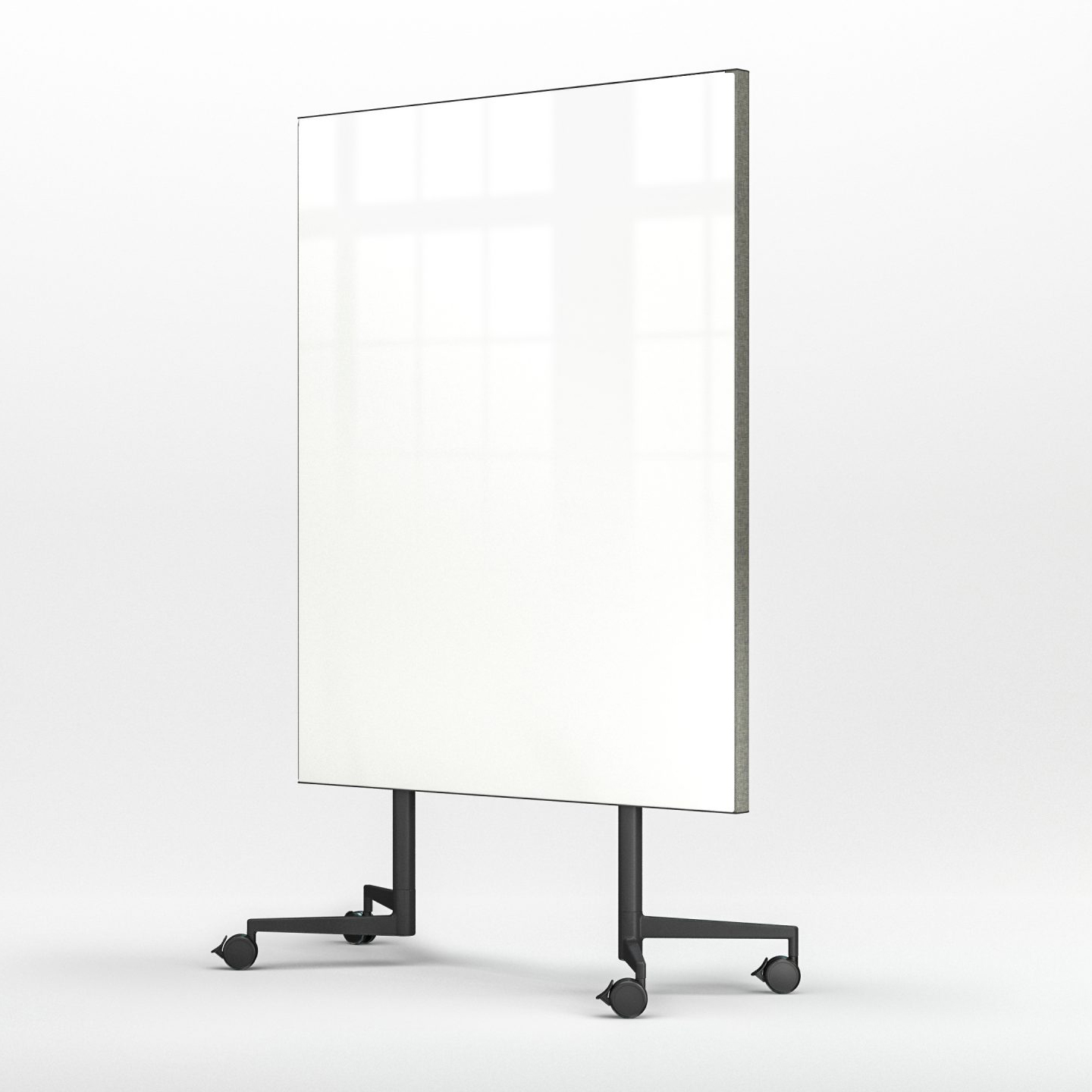 "Chat Board Move kombinerer en magnetisk og skrivebar glastavle med et akustikpanel. Forsiden af Move er en klassisk glastavle, mens bagsiden er dækket med Remix-uld fra Kvadrat.