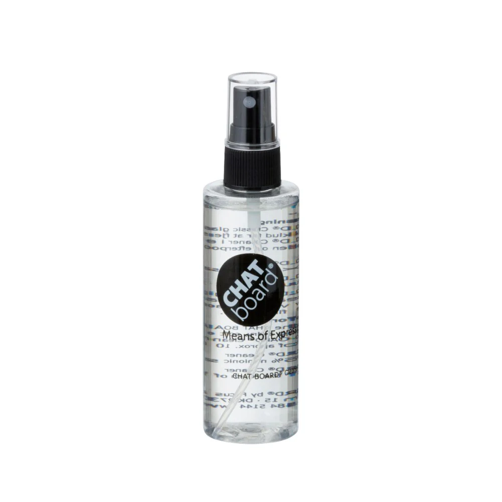 "Hold glastavler og whiteboards rene og pæne med CHAT BOARD® rensevæske. Rensevæsken er udviklet til effektiv og skånsom rengøring, så tavlens overflade bevares flot og fri for skygger fra markerpenne.