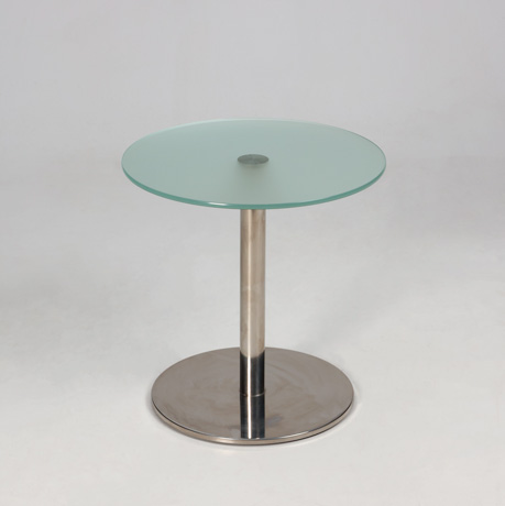 "Circle loungebord med rund bordplade i matteret glas med blankforkromet sokkel.