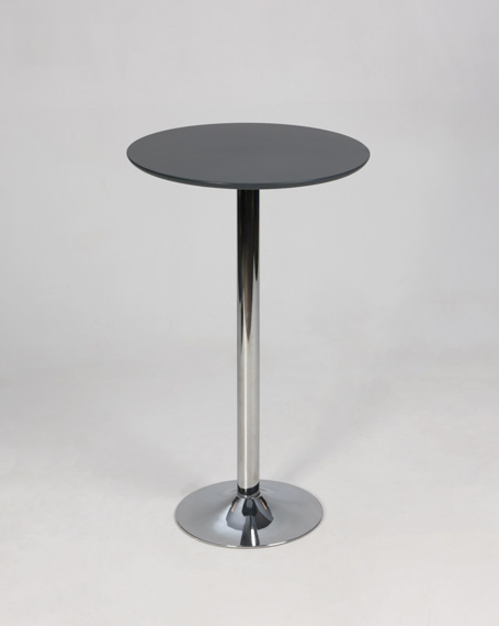 Circle loungebord med rund bordplade i matteret glas med blankforkromet sokkel.