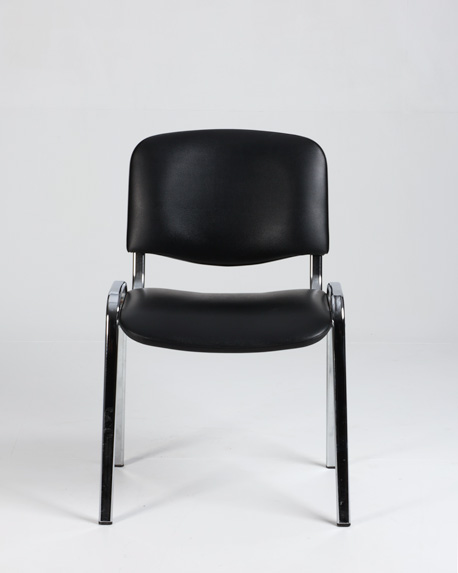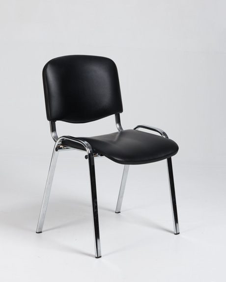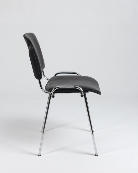 "Comfort Basic stabelbar stol polstret i ryg og sæde og betrukket med sort kunstlæder.