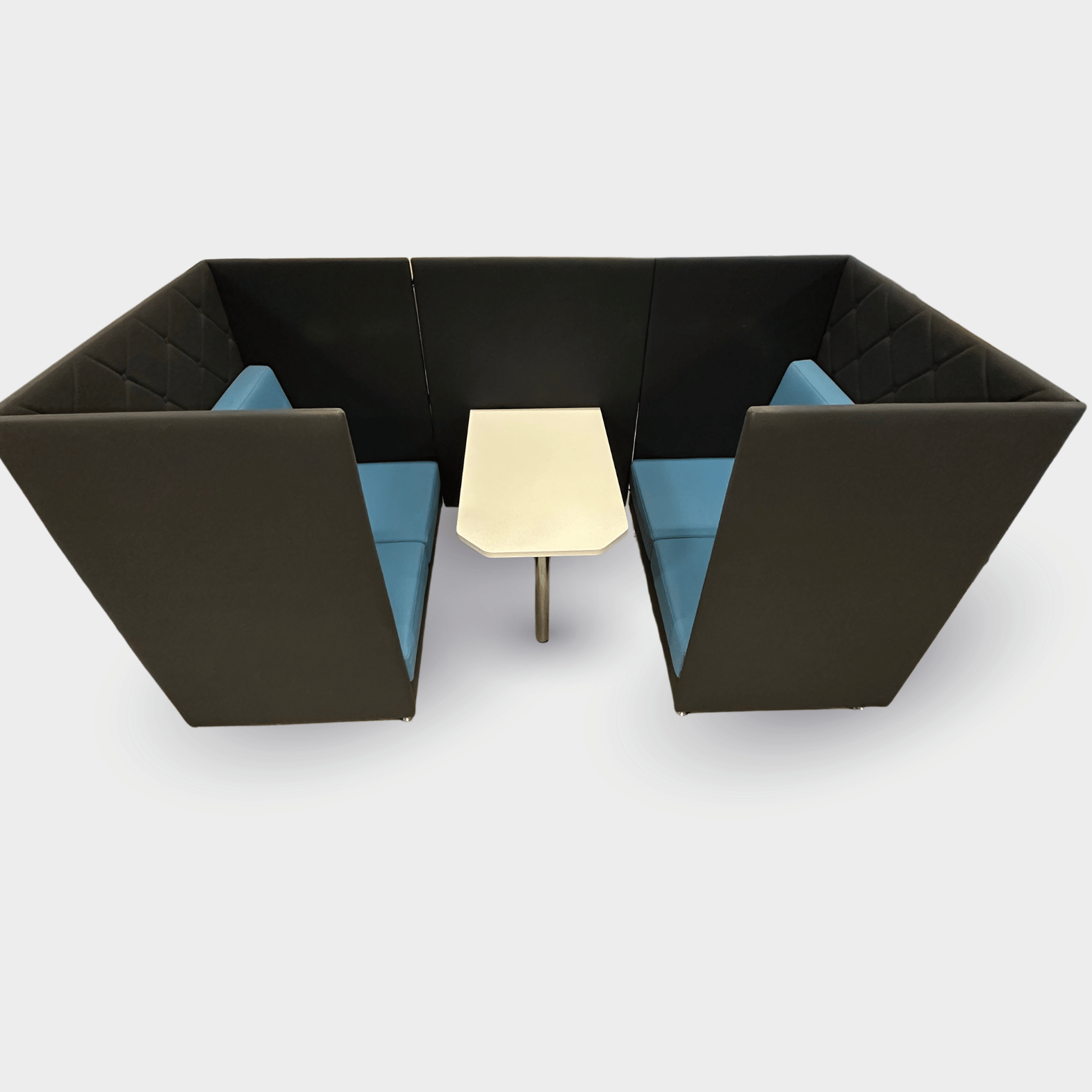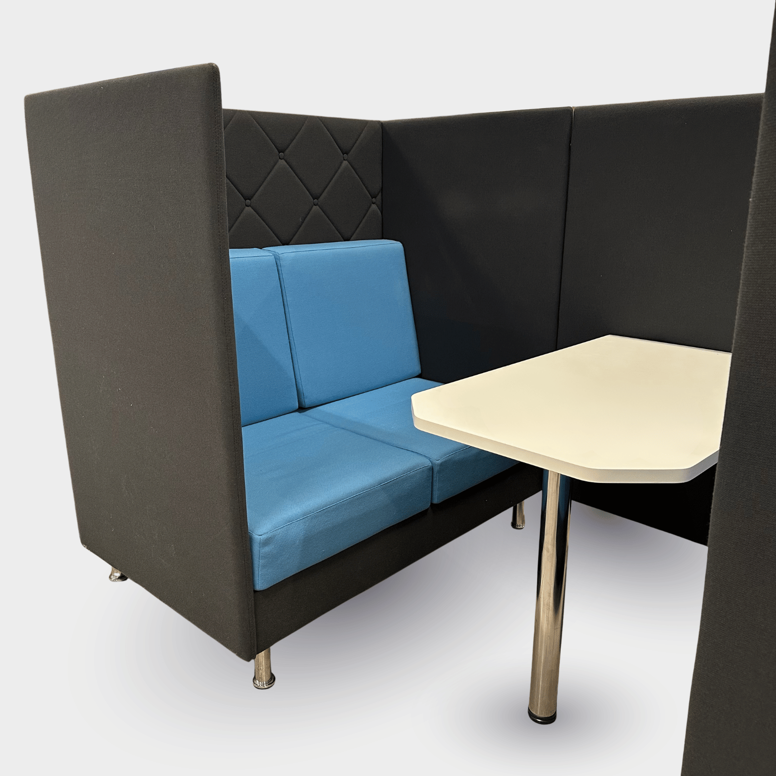 De høje, polstrede sider og den quiltede ryg, bidrager til bedre akustik og mindsker visuelle forstyrrelser.