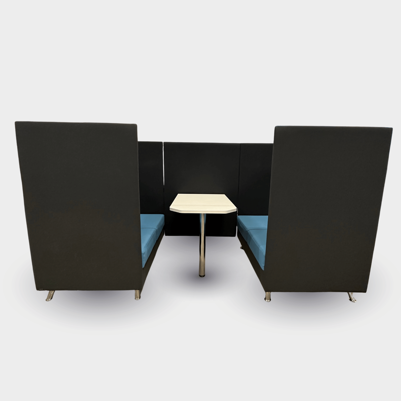 "Atelier er en stilren akustiksofa/møderum fra Dauphin, med integreret bord i midten, designet til at skabe et afskærmet rum-i-rummet i åbne kontormiljøer.