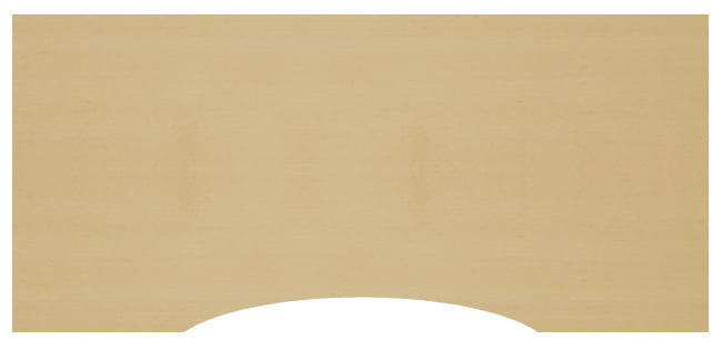"MDF-bordplade med mavebue i bøgefinér med affasede, lakerede kanter.