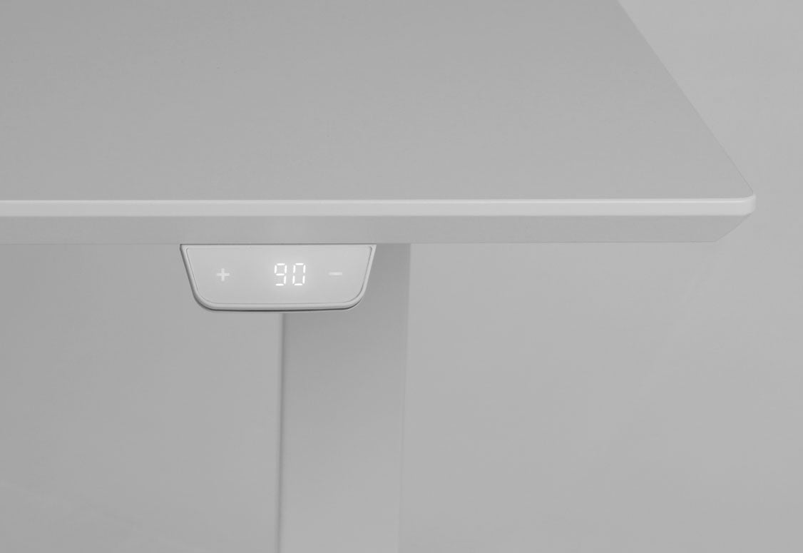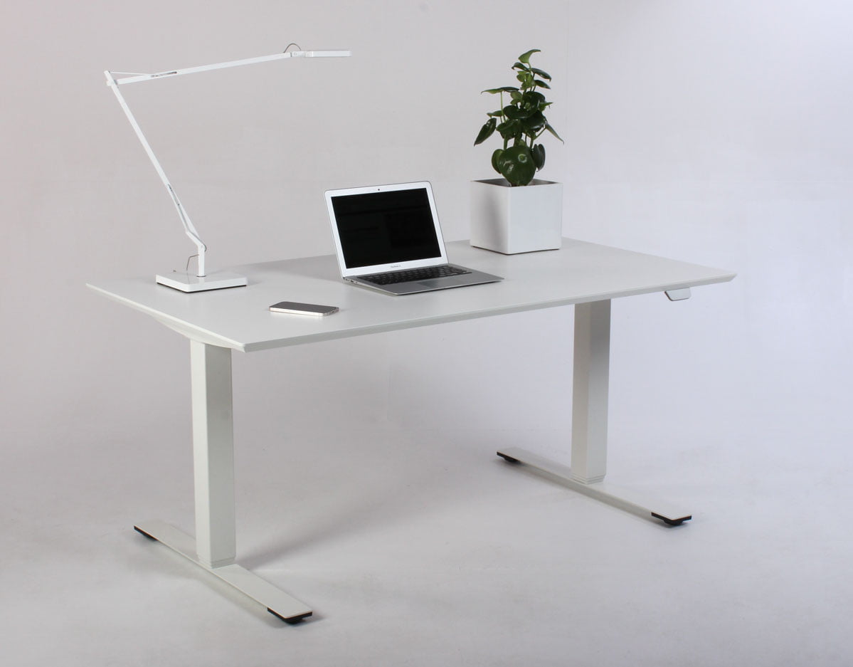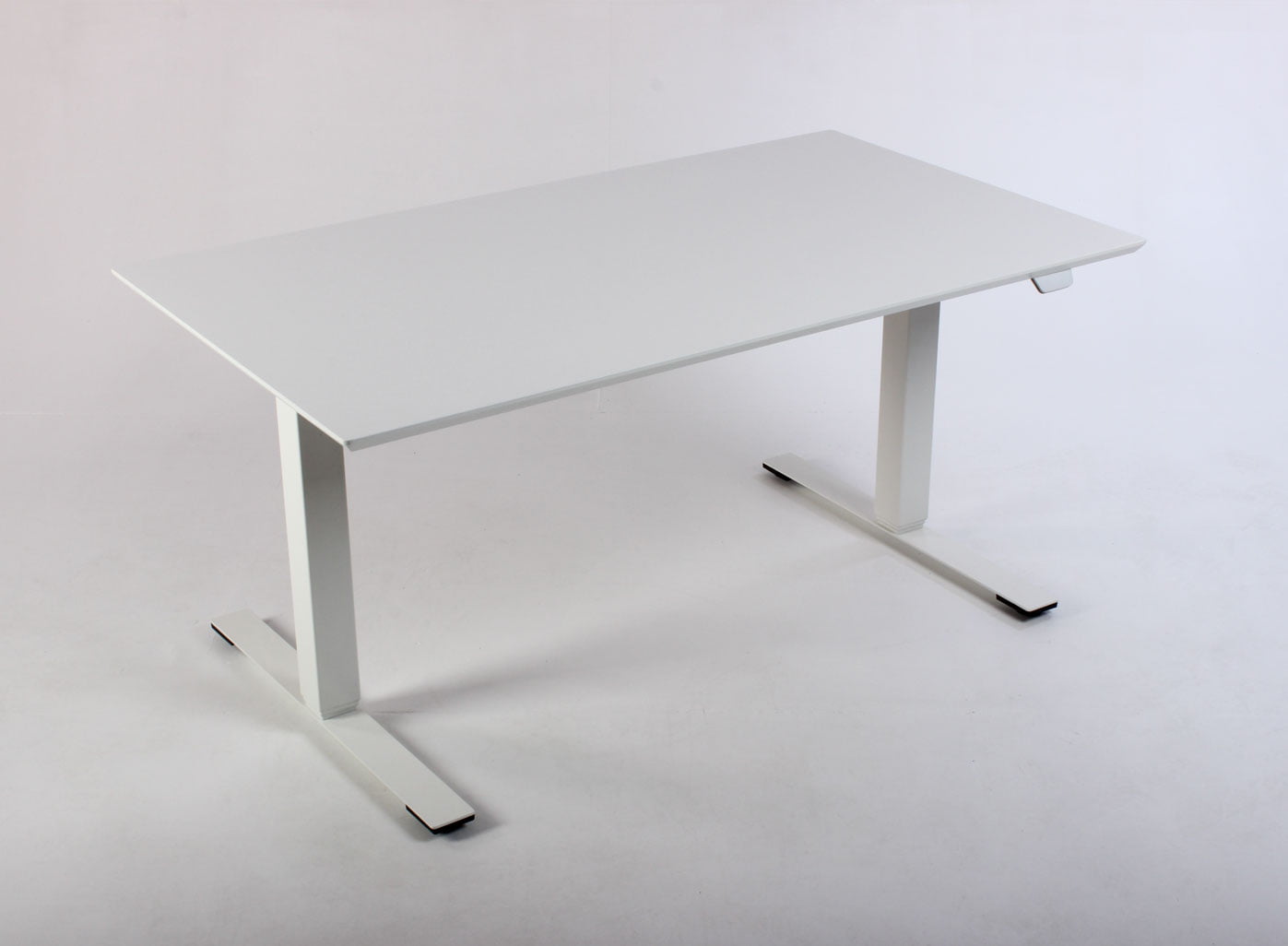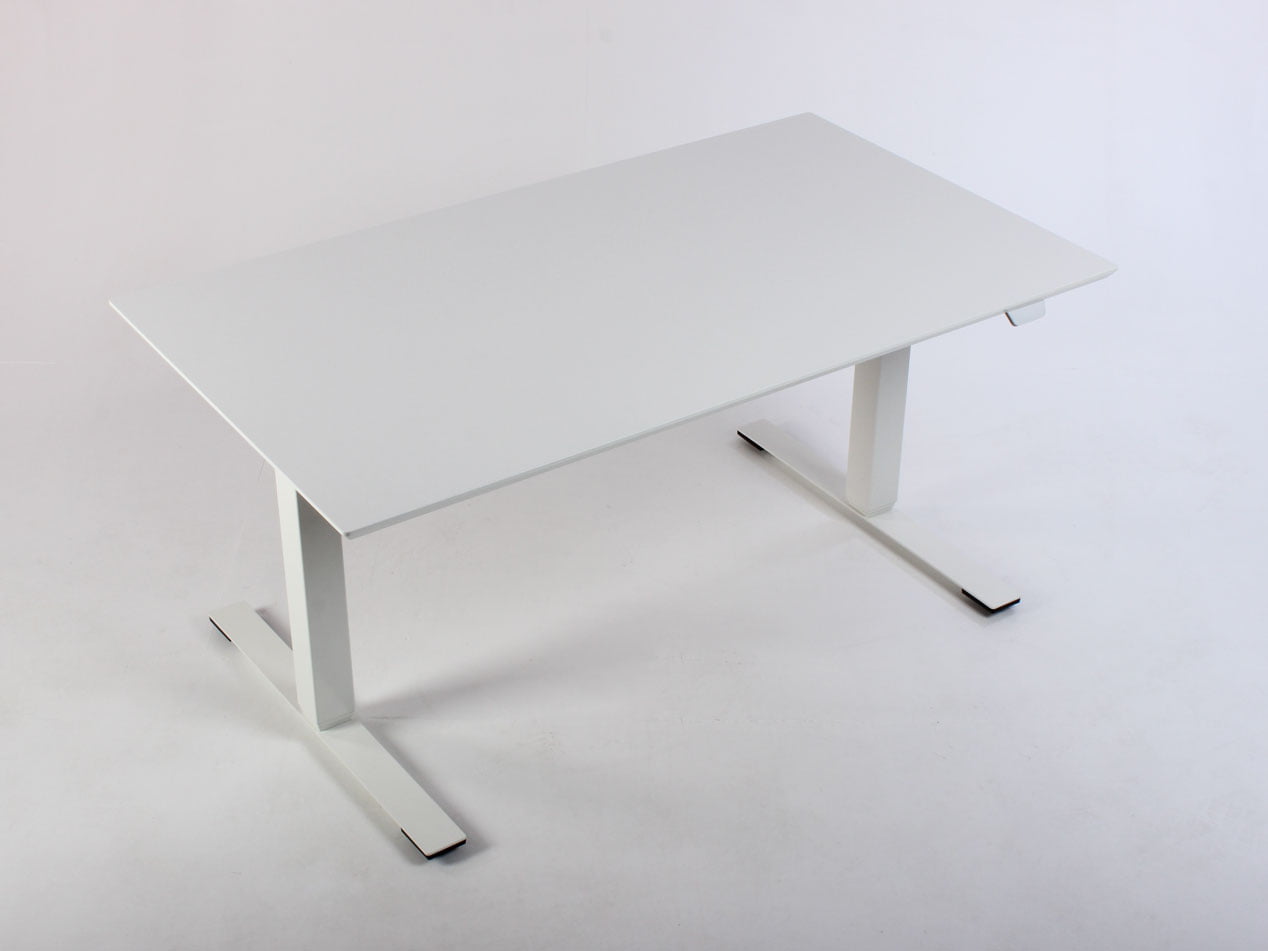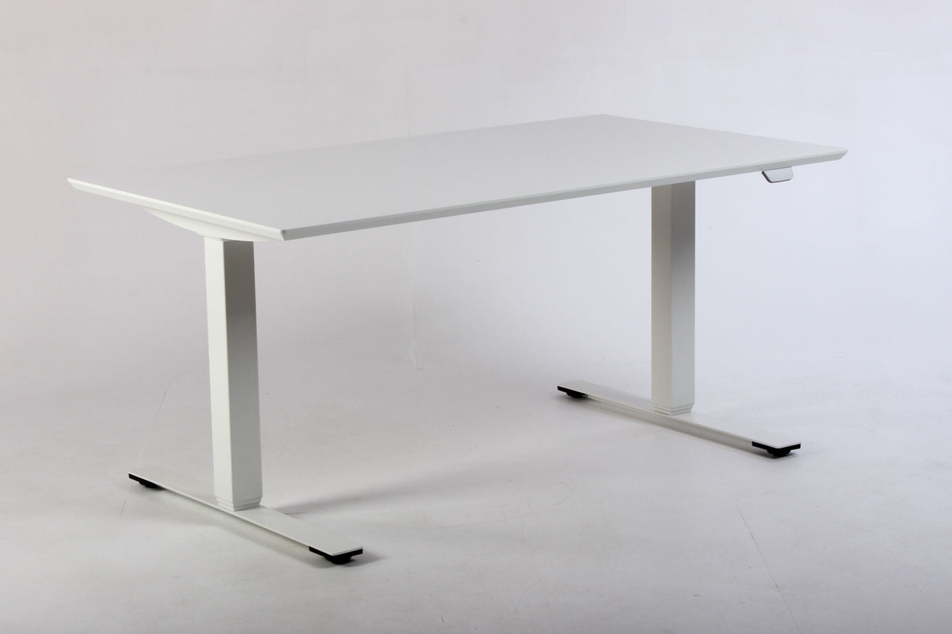 "Dencon Delta hæve-sænkebord med hvid laminatbordplade, med affasede lakerede kanter på hvidt stel. Bordets stel er udstyret med to motorer og tre led der justerer højden fra 65-131 cm. Styringsenheden har digital visning af højden – en flot detalje, der giver bordets udseende et moderne løft og samtidig giver brugeren vished for, når den sædvanlige, foretrukne arbejdshøjde er nået. For et flot og funktionelt finish, se vores udvalg af tilbehør i form af kabelrosetter, kabelbakker og udtræksskuffer – vi monterer det GRATIS!