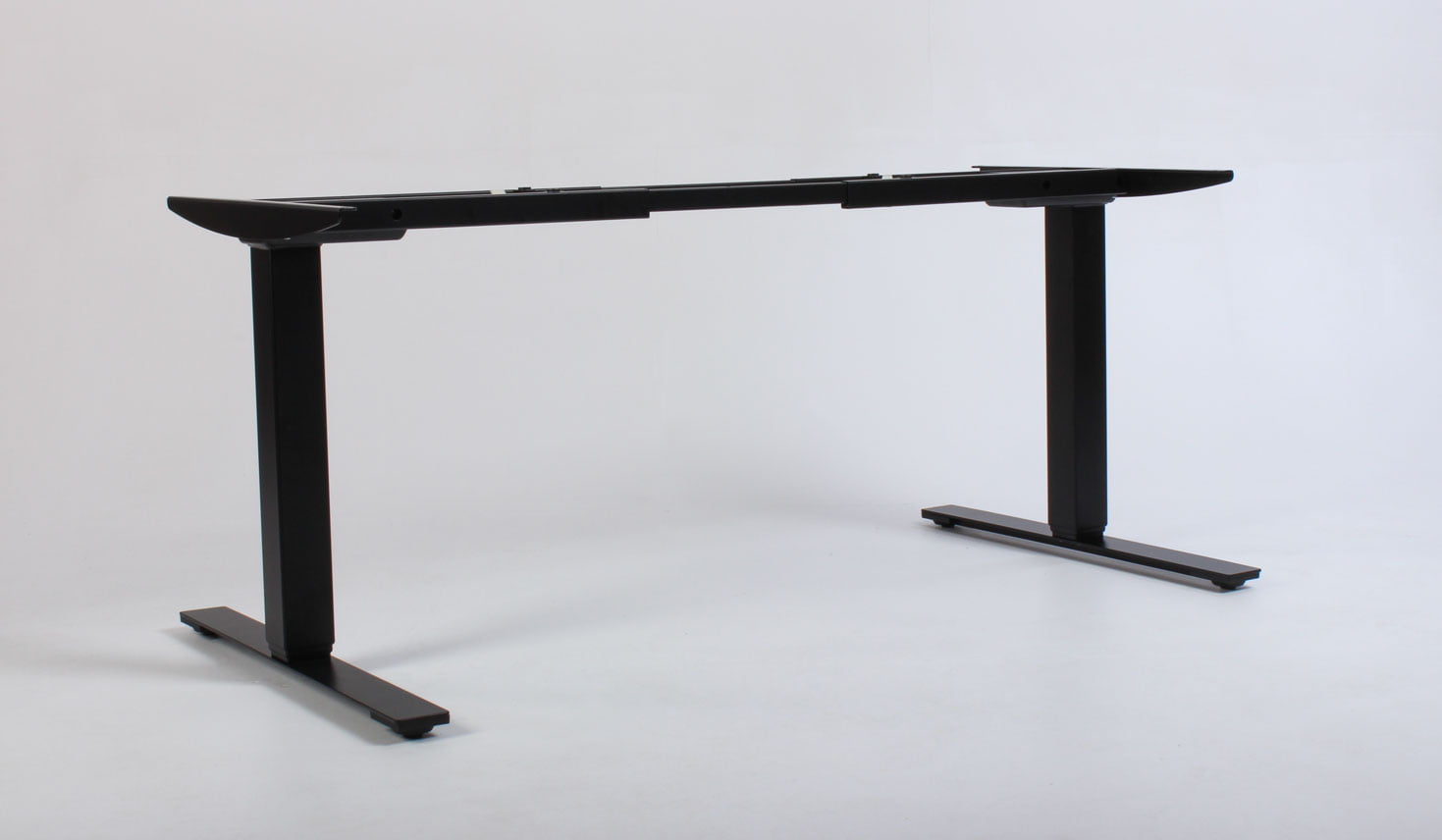 "Fabriksnyt Dencon Delta hæve-sænkestel i sort. Den danskproducerede stel er justerbart så det kan anvendes til bordplader fra 120-200 cm, og har en maximal løftekapacitet på 100 kg. De to motorer og tre led justerer højden fra 65-131 cm, og kan følges på den lille digitale betjeningsenhed, så brugeren har vished for, når den sædvanlige, foretrukne arbejdshøjde er nået.