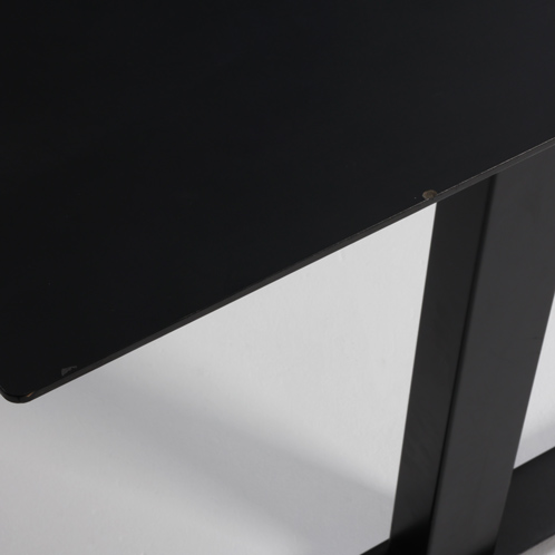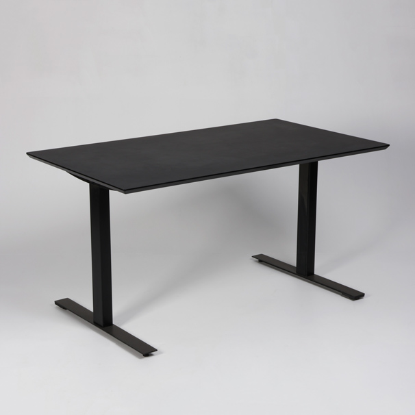 "Mindre Dencon rektangulært mødebord til 4 personer med solidt sort stel og sort linoleumsbordplade.