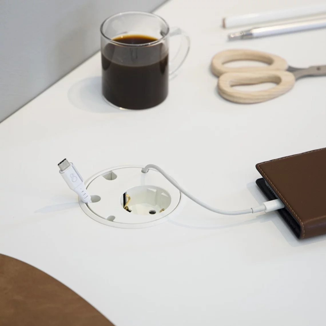 Duelco Powerdot strømudtag er en praktisk løsning, der gør det muligt at integrere strømforsyning direkte i bordpladen. Powerdotten er især ideel i hæve-/sænkeborde eller konferenceborde, hvor der er behov for at tilslutte bl.a. laptops, telefoner samt øvrige elektroniske enheder. Monteres nemt i bordpladen ved hjælp af et 79 mm kopbor. Findes desuden som variant med flere udtag samt trådlås mobilopladning her.