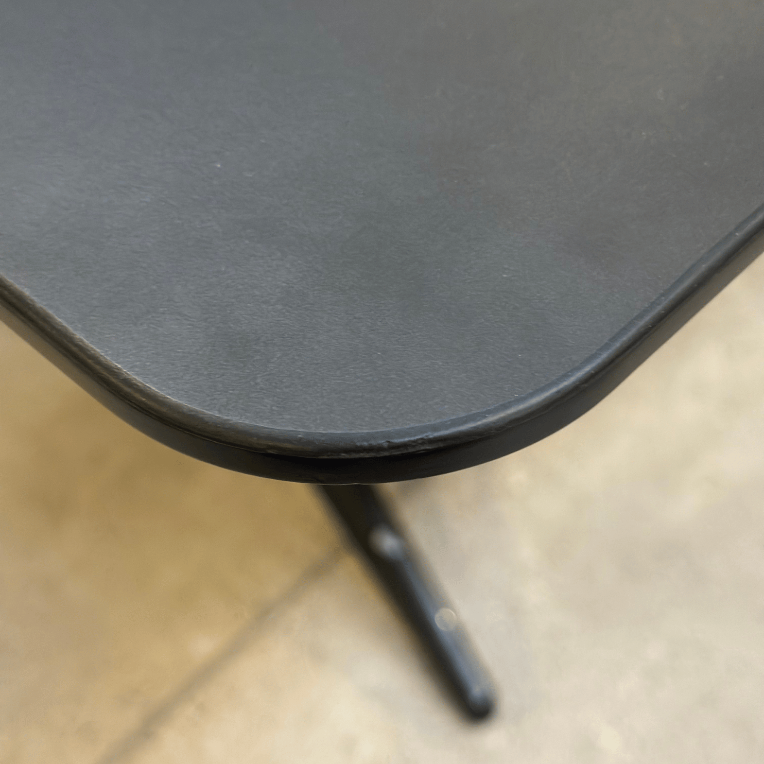 "EFG Hide Tech møde- og konferencebord til seks personer, med sort linoleumsbordplade og sort metalstel.