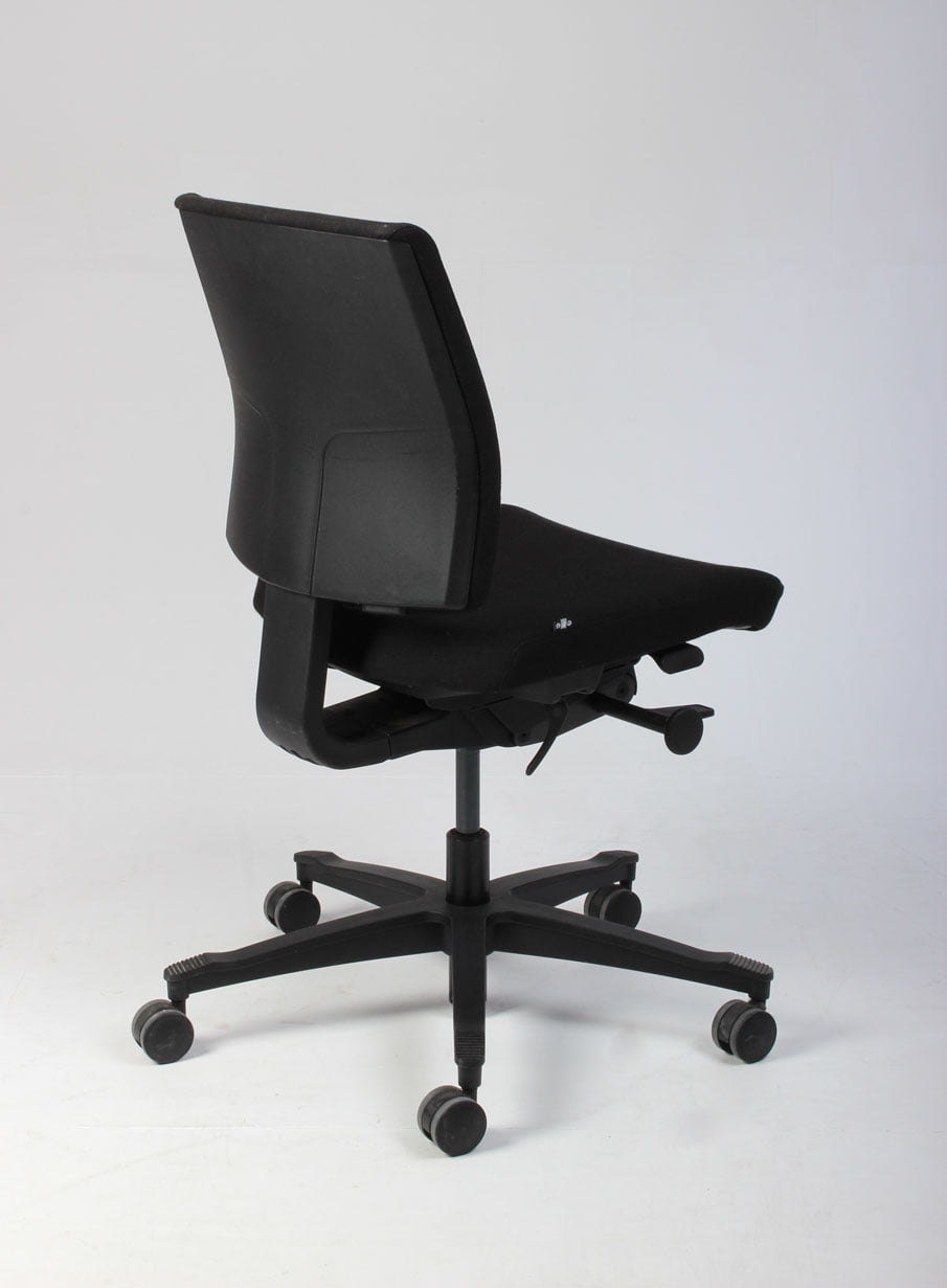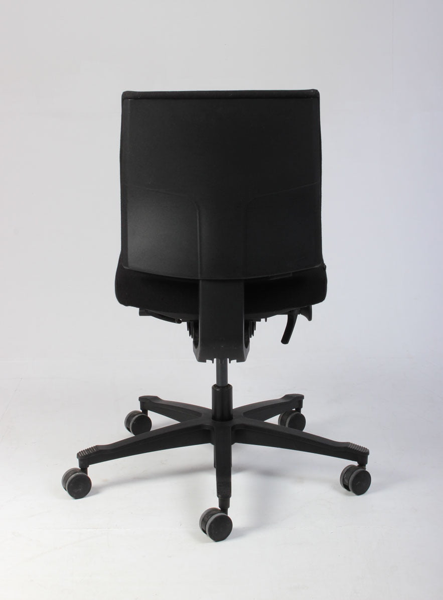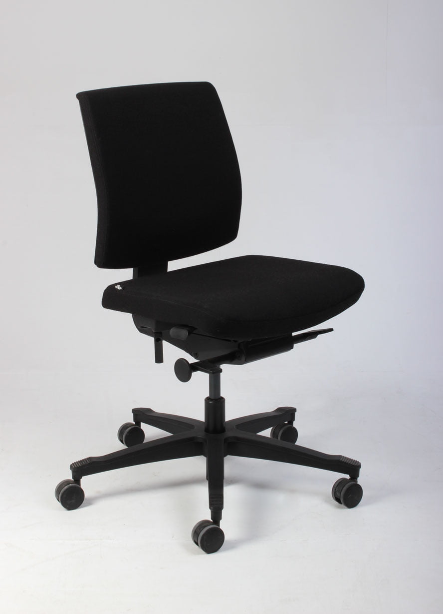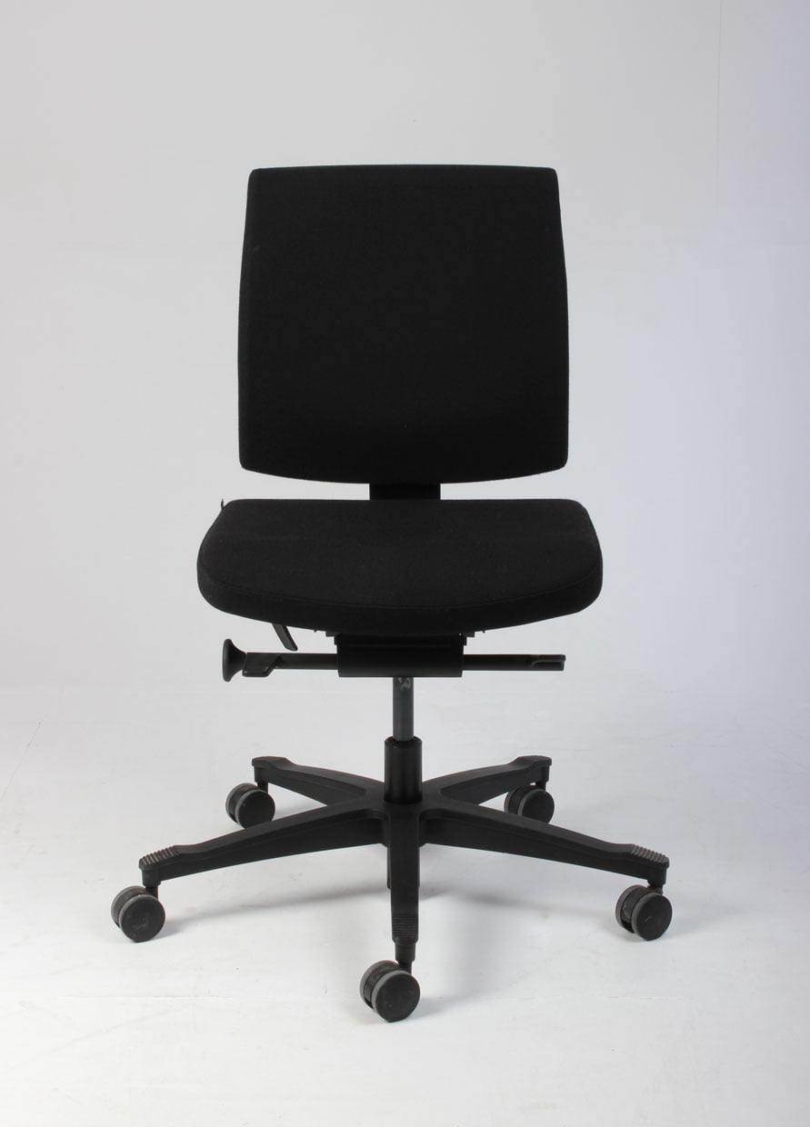 "EFG kontorstol polstret og betrukket med sort fame og sort fodkryds.
