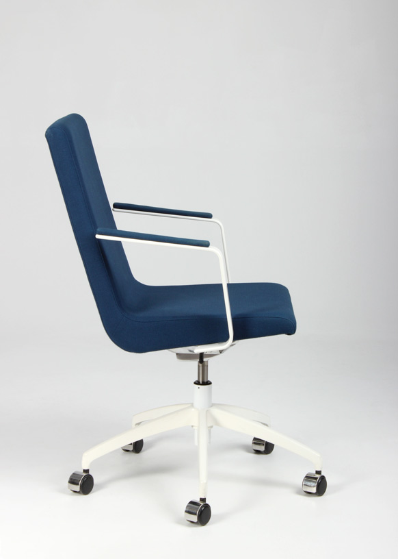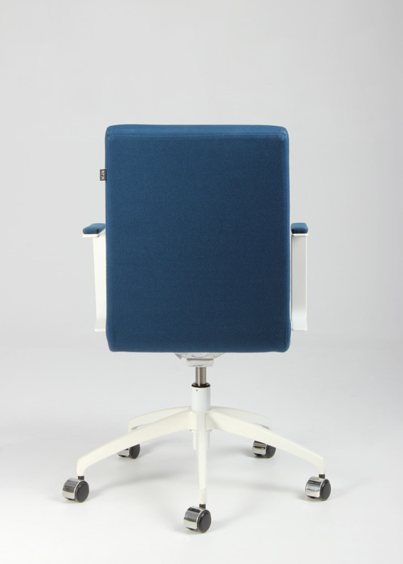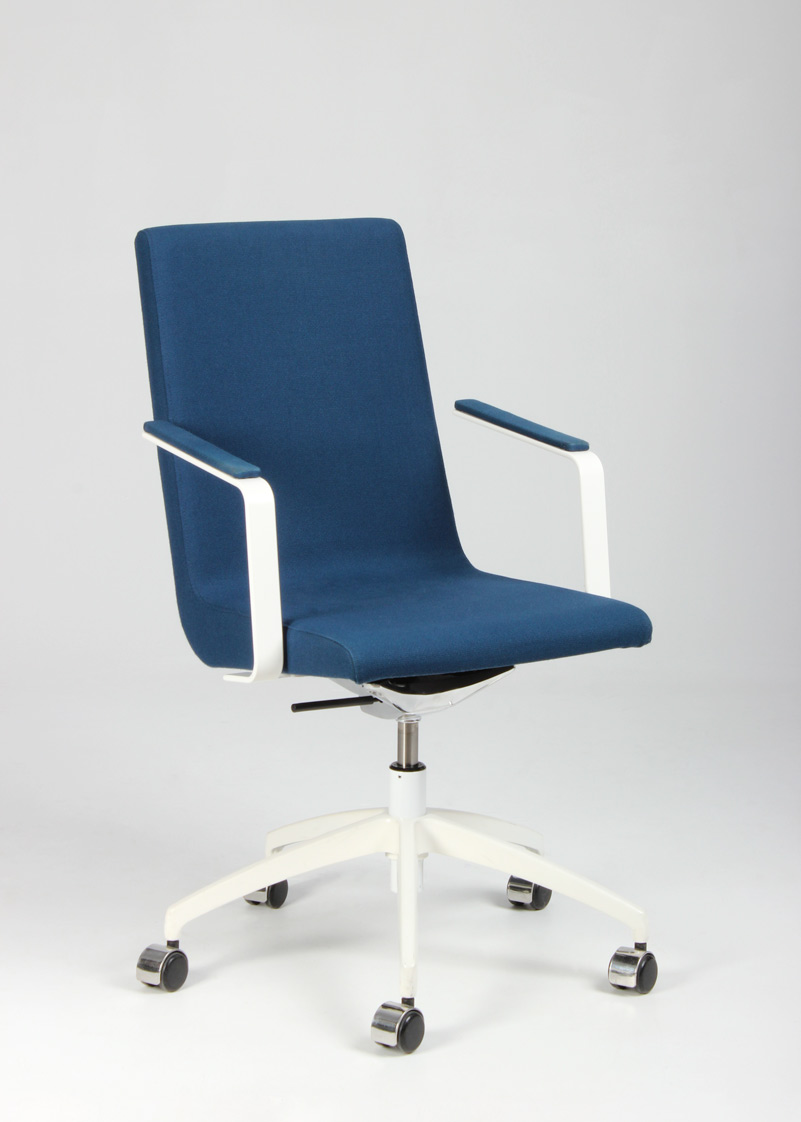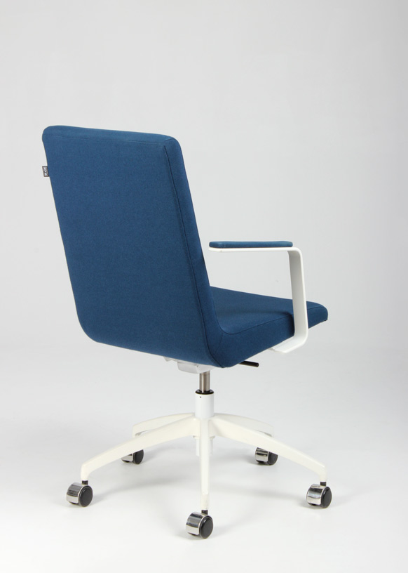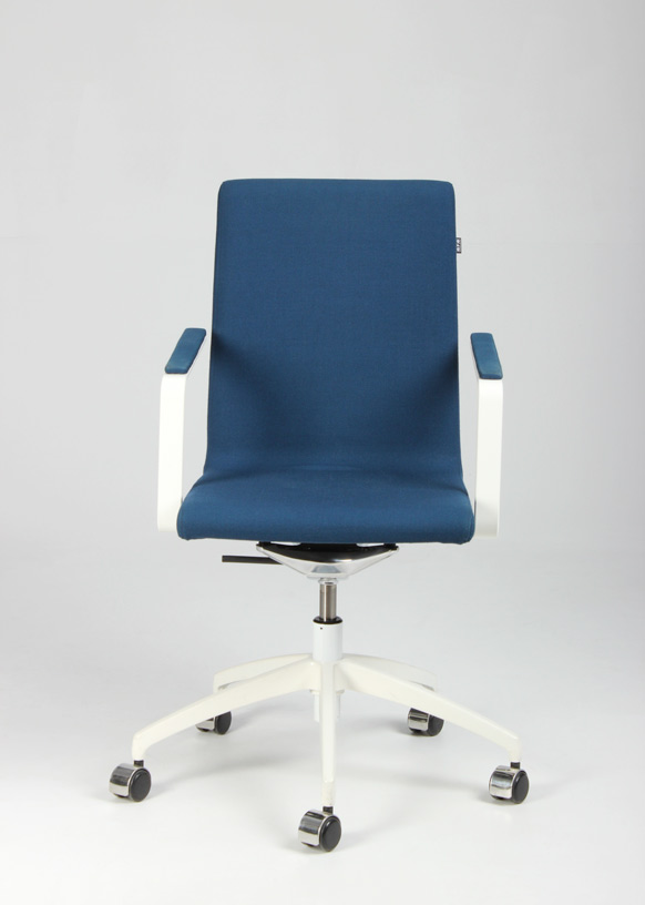 "EFG Woods konferencestol i mørk turkisblå fame på hvidt fodkryds. Stolen er både højdejusterbar og har rygvip, for en forbedret komfort ved længere brug. Kvalitetsstolen fra svenske EFG, yder en ergonomisk og god siddekomfort og gør den perfekt til lange møder omkring konferencebordet.