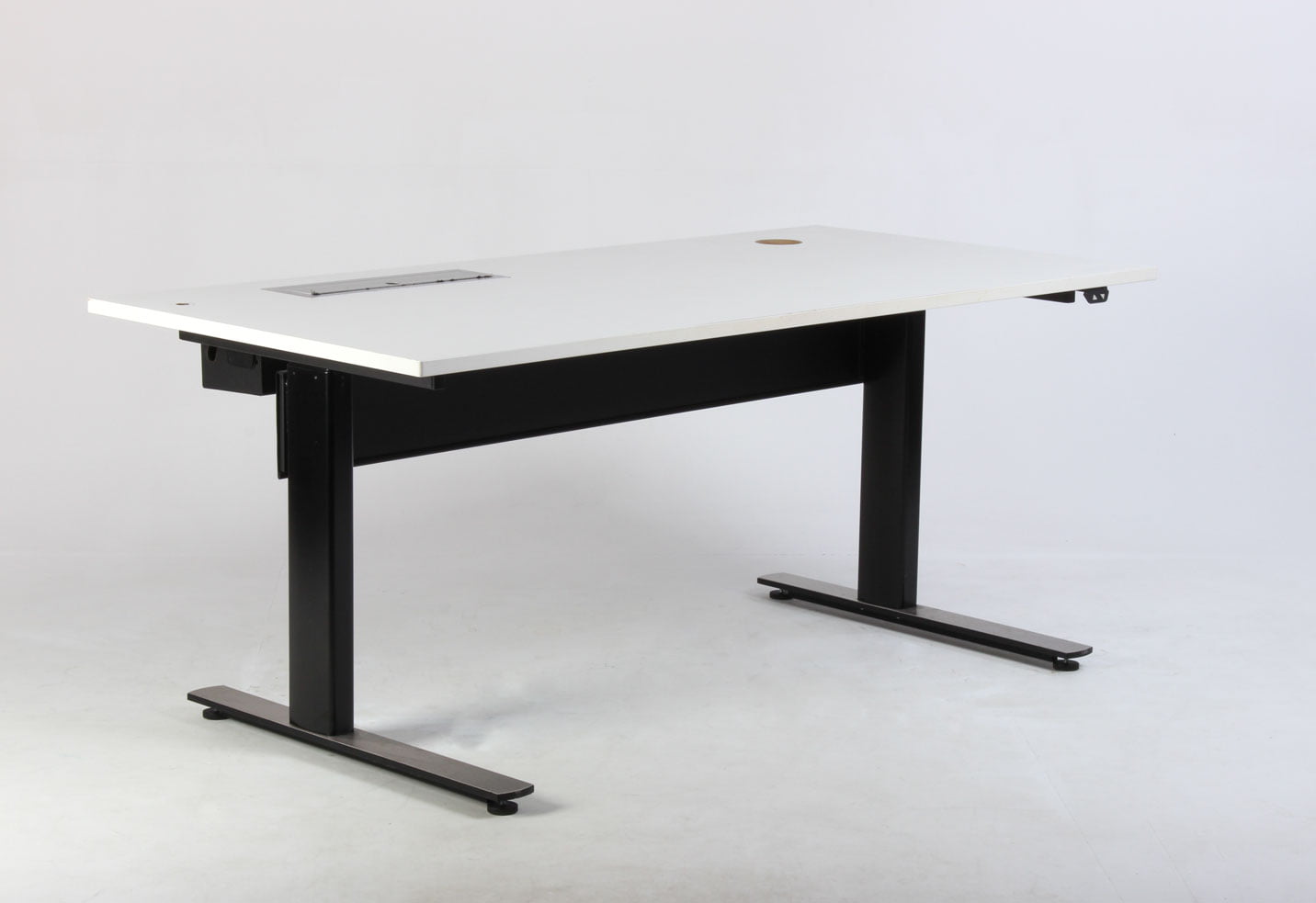 Hæve-sænkebordet har endvidere Inklusiv monteret kabelbakke, der samler og holder orden på de mange ledninger fra PC og det øvrige elektroniske udstyr.