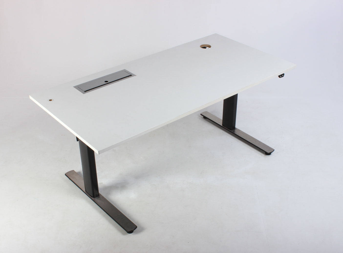 "Linak hæve sænkebord med rektangulær bordplade, med lige, hvidmalede kanter.