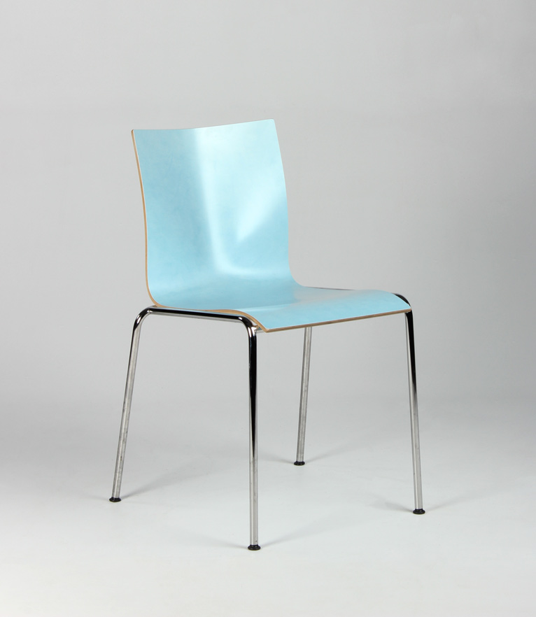 Engelbrechts Chairik 101 konferencestol i lys blå melamin med kant i krydsfinér.