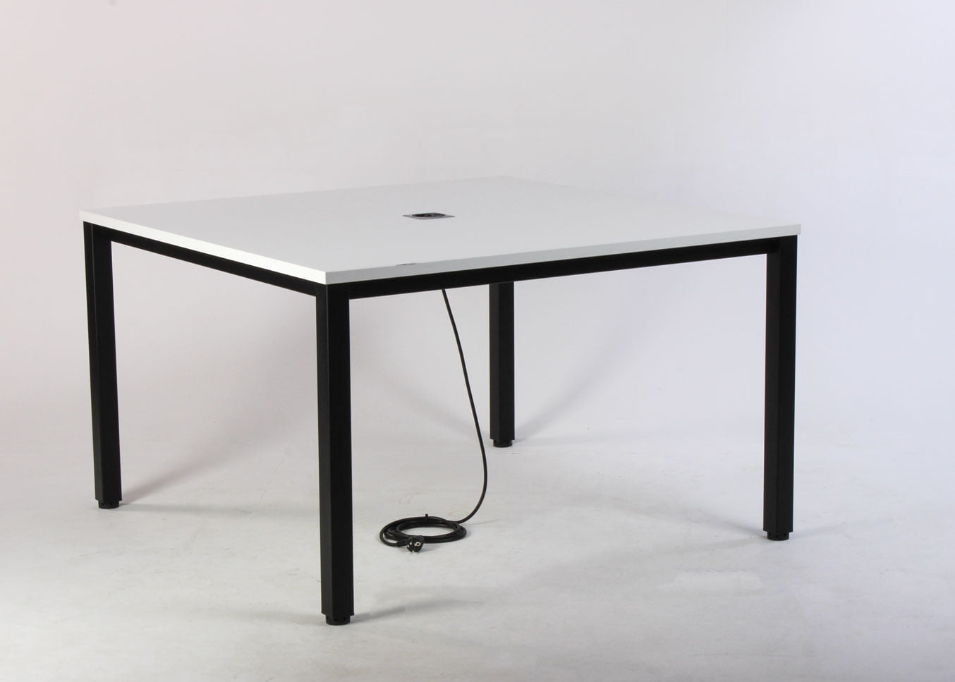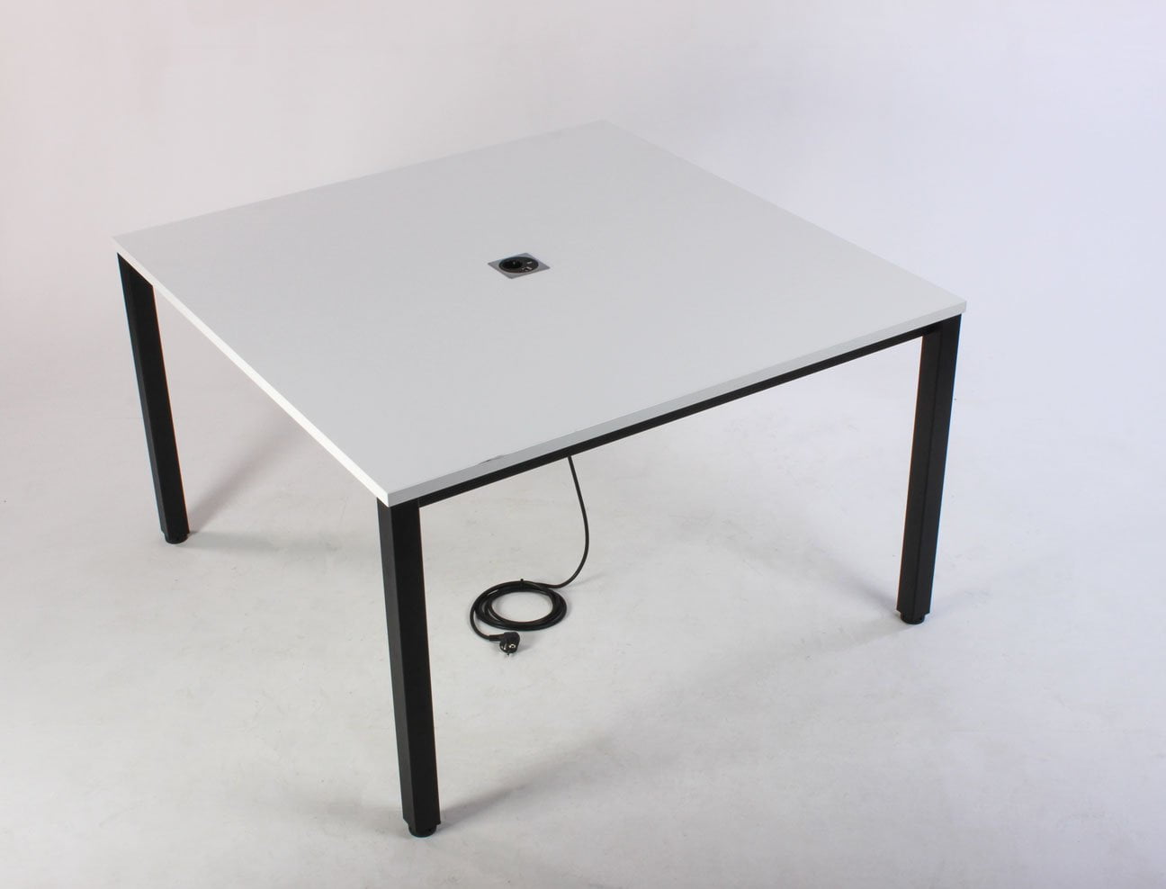 "ErgoEgo kvadratisk konferencebord, med hvid laminat-bordplade og sort stel.