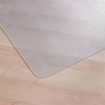 "Stoleunderlag fra Floortex til hårdt gulv, eksempelvis trægulv. Underlaget er uden pigge, men sidder alligevel urokkeligt fast på gulvet og sikrer en let overgang fra gulv til underlag samtidigt med at skåne gulvet for skrammer og lignende.