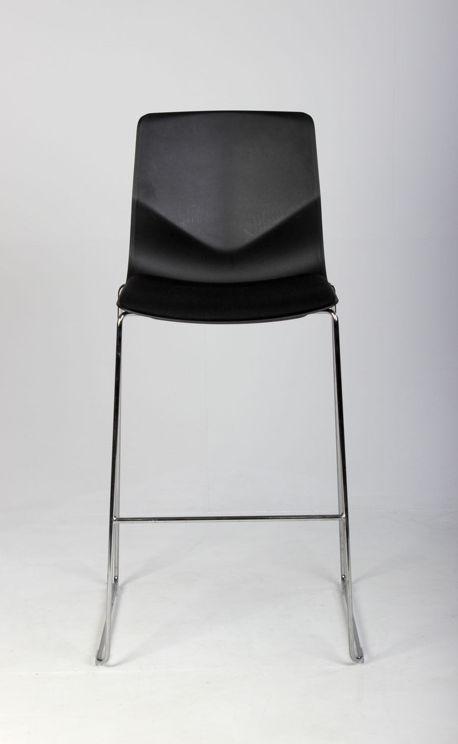 Four Design FourSure stabelbar barstol i sort med blankforkromet medestel med fodhviler.