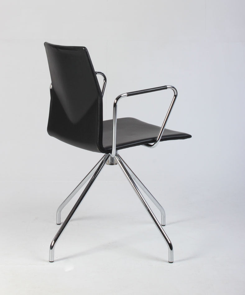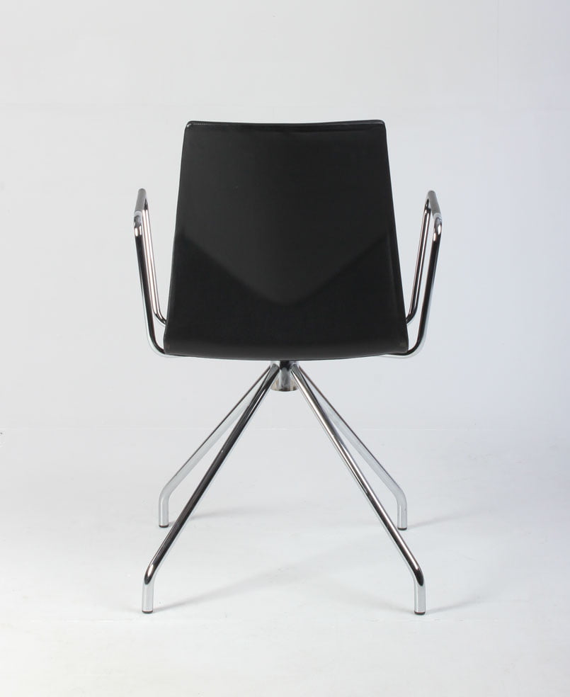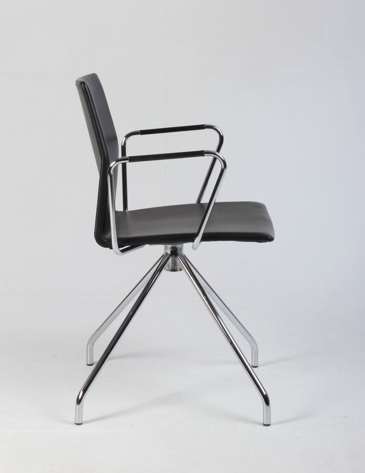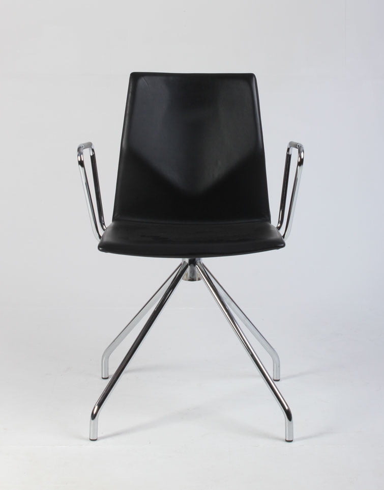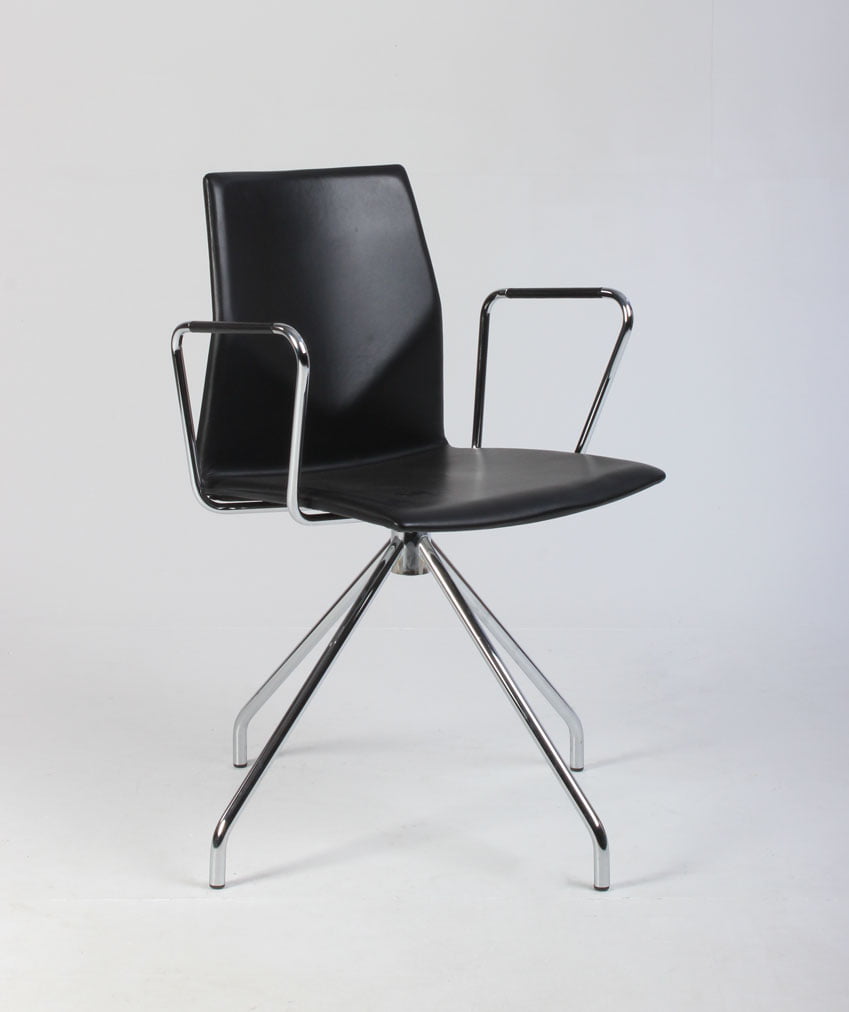 "Four Design FourCast 2 One i sort, fuldpolstret læder med blankforkromet armlæn og drejestel.