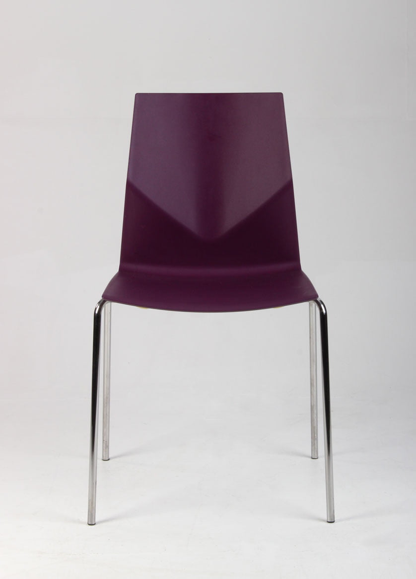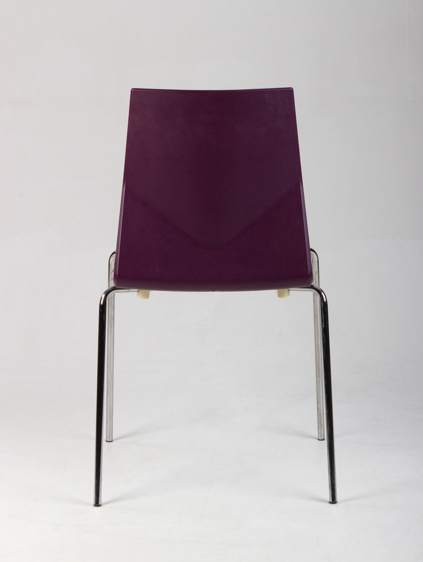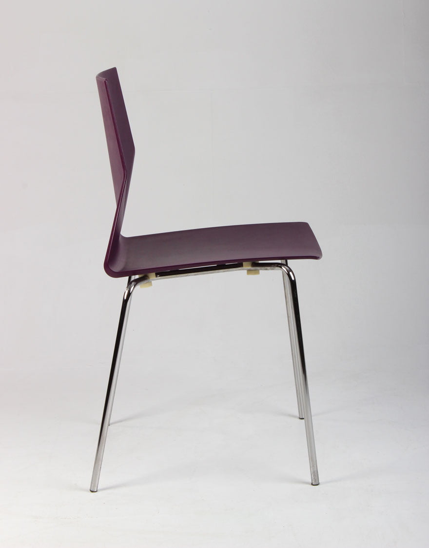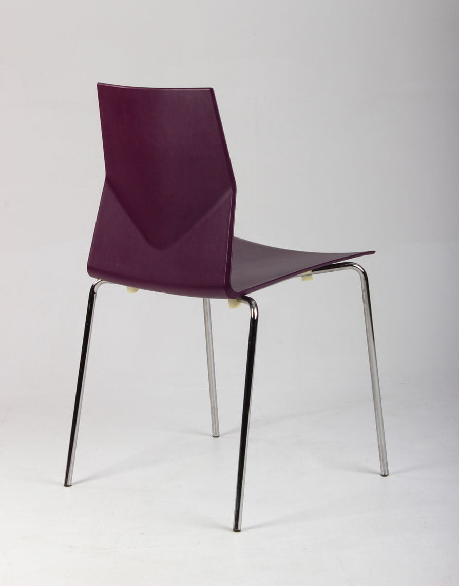 Kvalitetsstolen fra danske Four Design, har et lettere fleksibelt ryglæn og ben i blankforkromet stål.