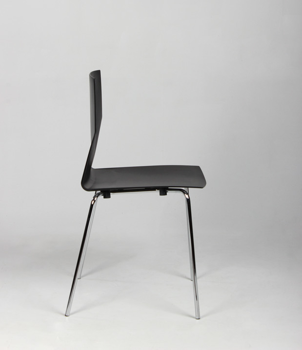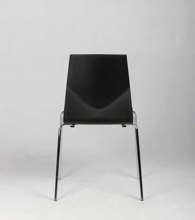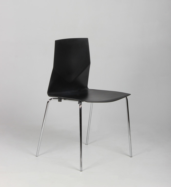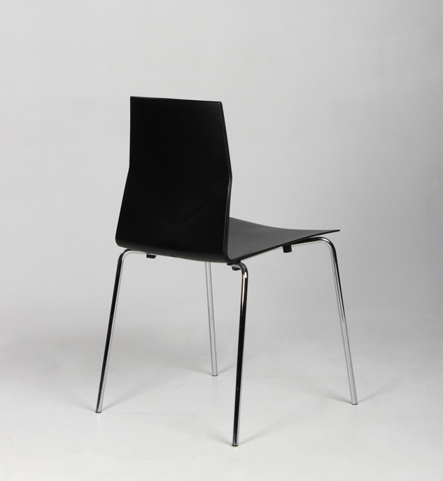 Kvalitetsstolen fra danske Four Design, har et lettere fleksibelt ryglæn og ben i blankforkromet stål.