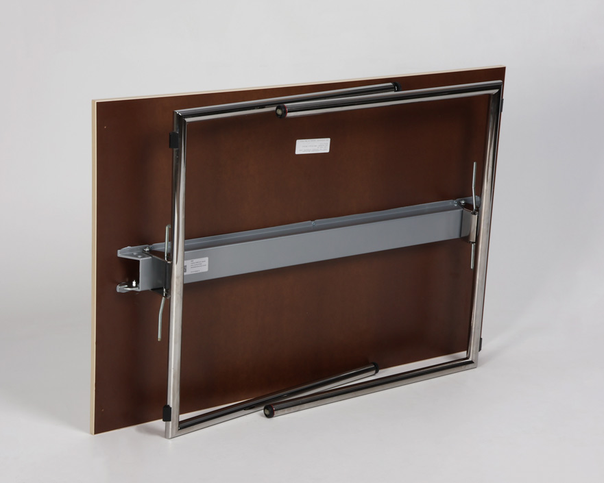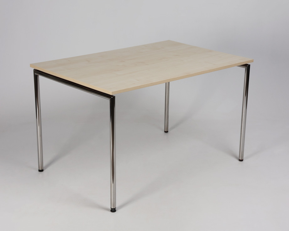 "Four Design FourEating klapbord i birkelaminat med blankforkromet stel med runde ben. Under to af benene er små diskrete hjul, der gør det nemt at flytte ved blot at løfte i den ene ende. Robust og gedigent bords til kantine, frokoststue eller som ekstra bord ved selskaber.